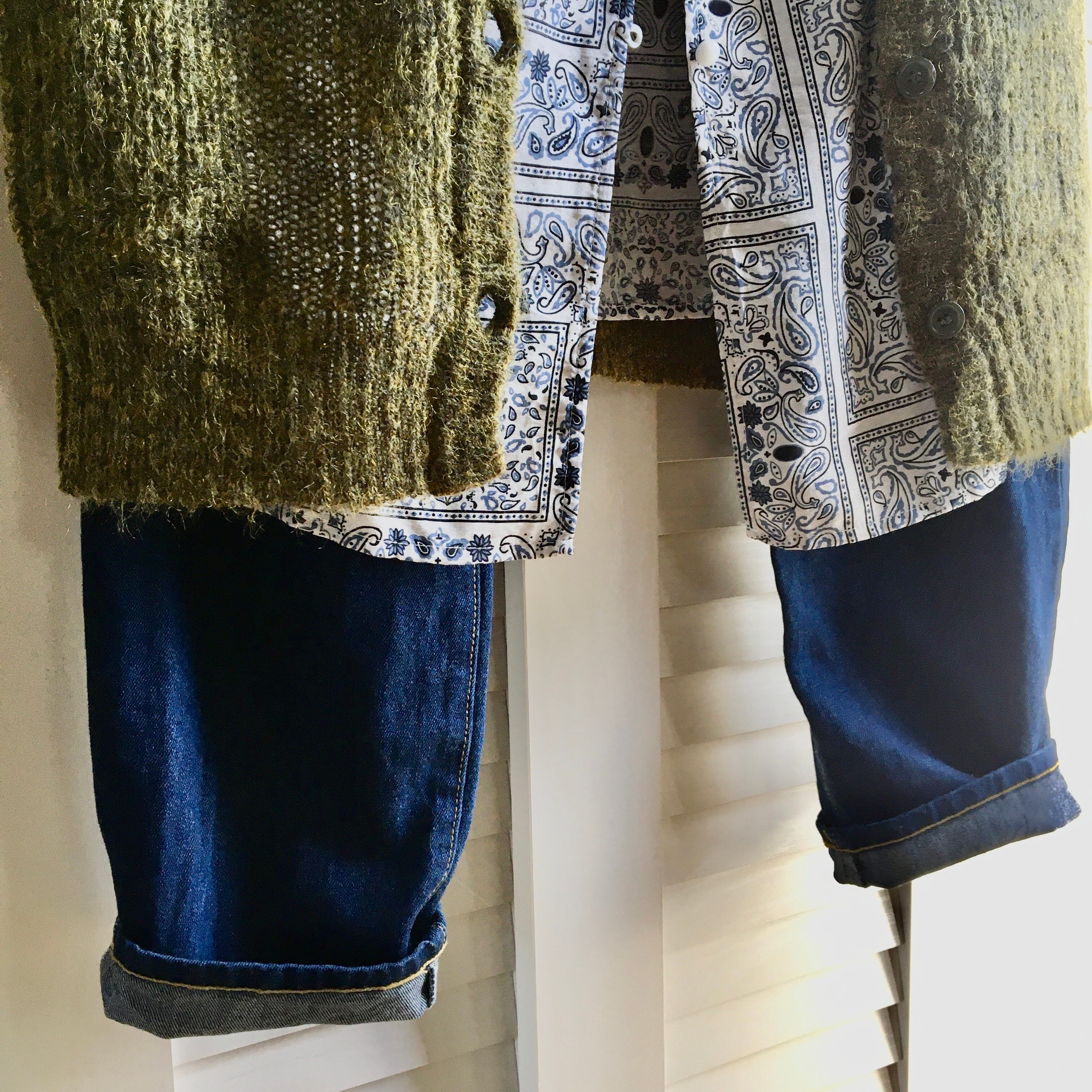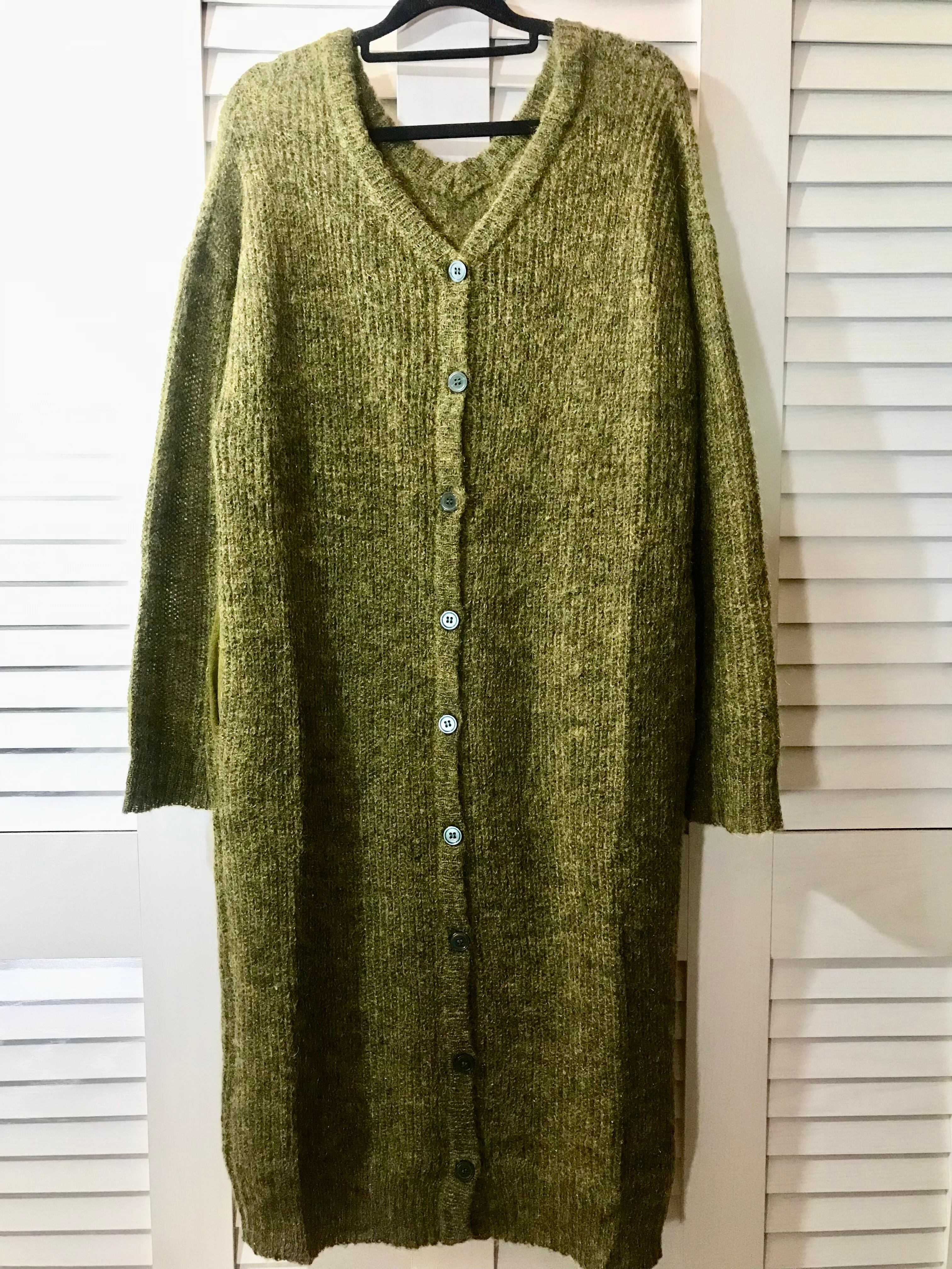 ・KBF ローゲージキラキラモヘアロングニットカーデ 抹茶色 ¥4,900-