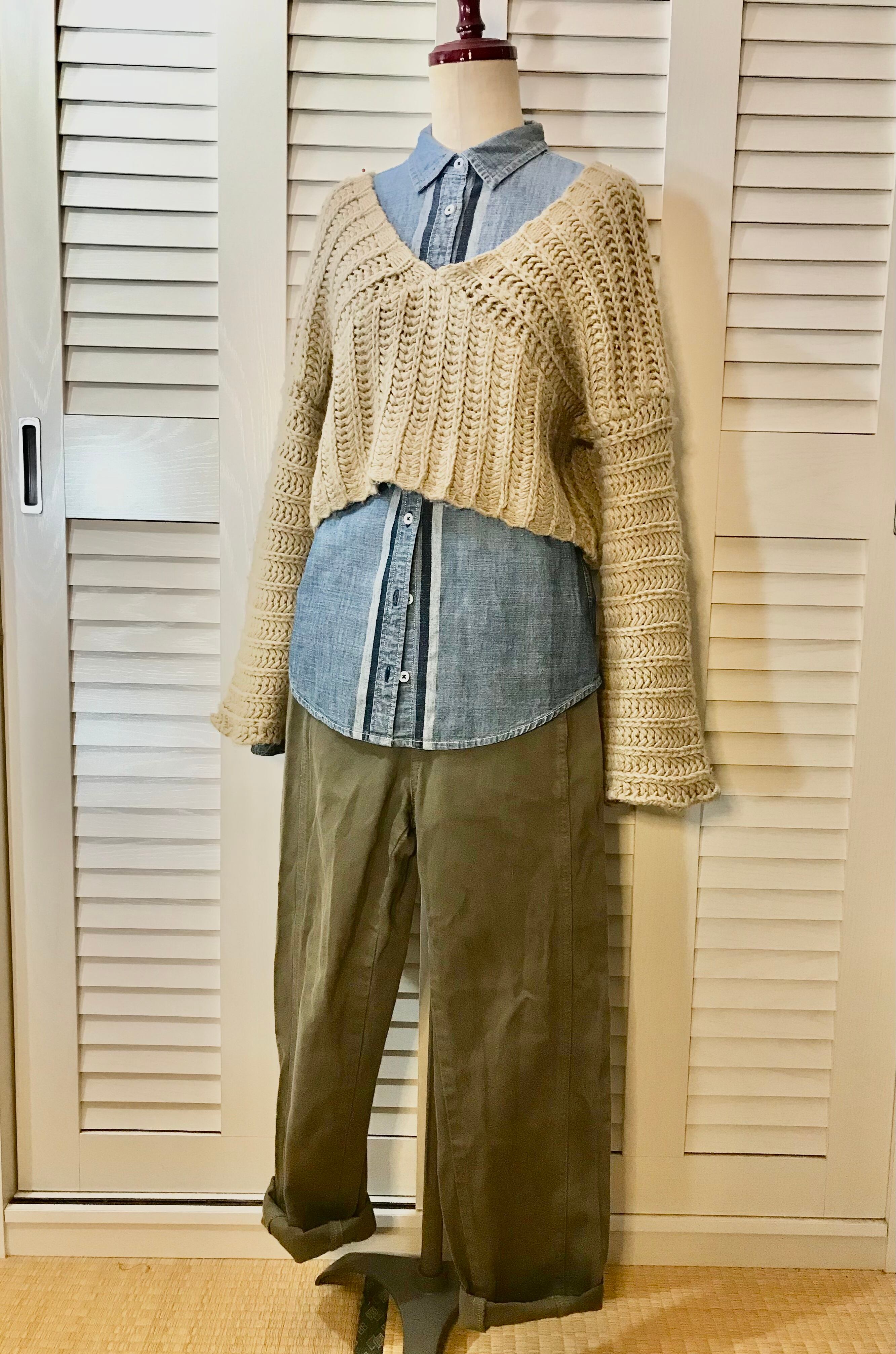 【リクエストコーデ①】カーキパンツ+ショートニット