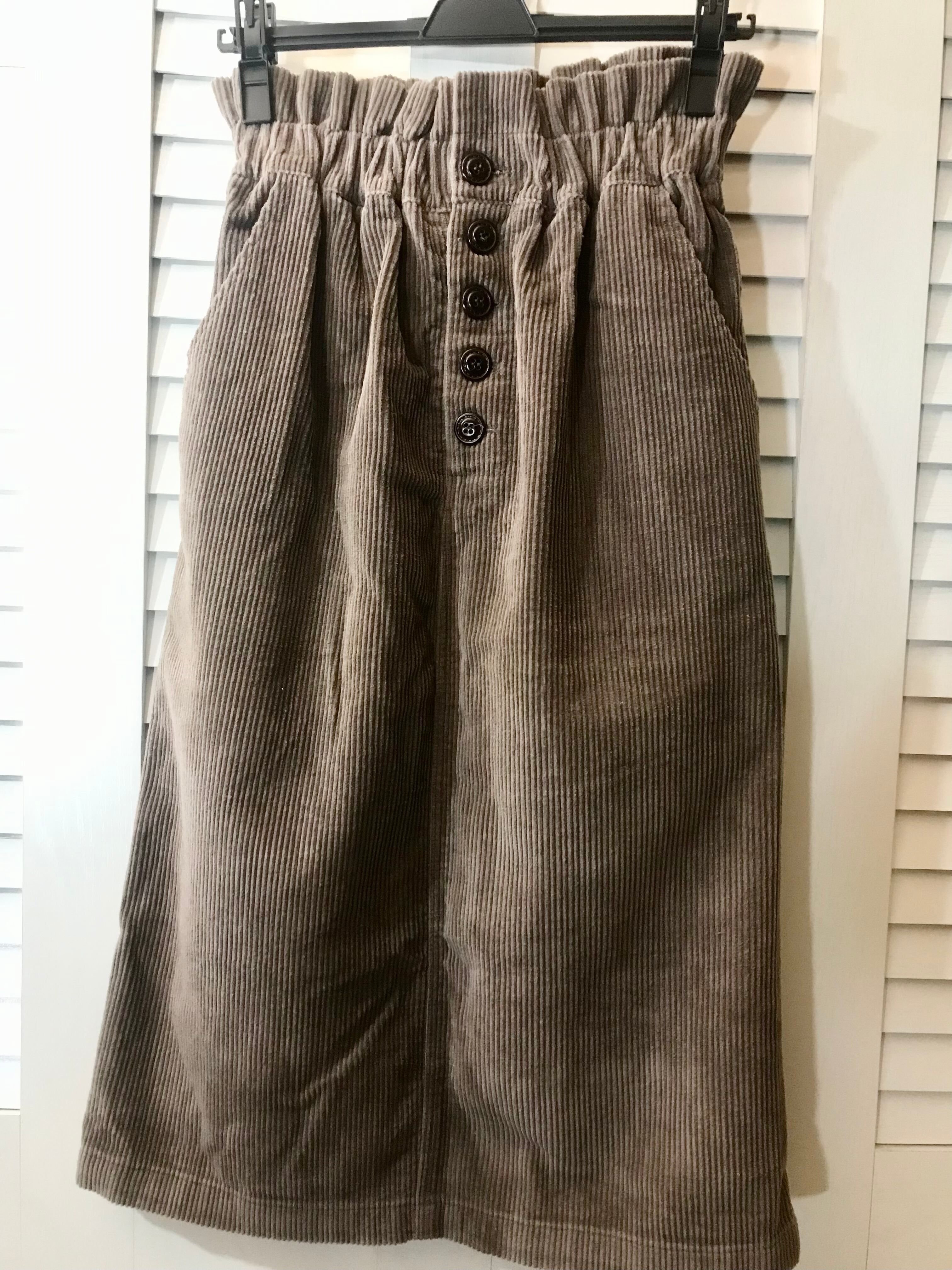 ・Crisp 中コールハイウエストデザインボタンナロースカート カーキ ¥3,900-