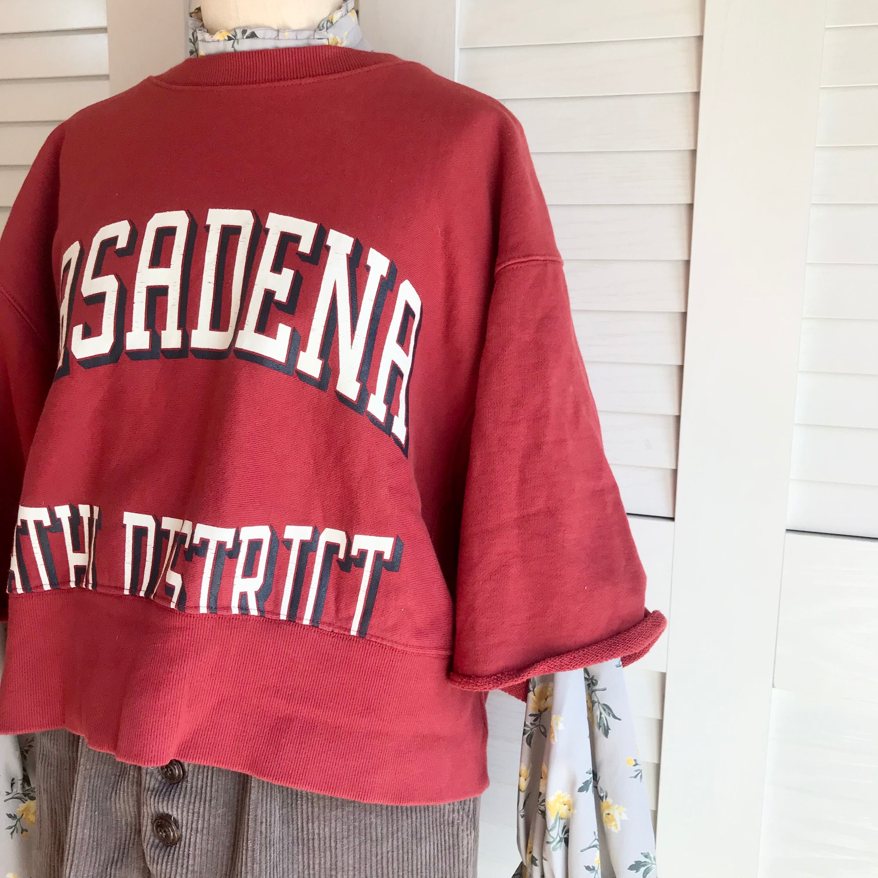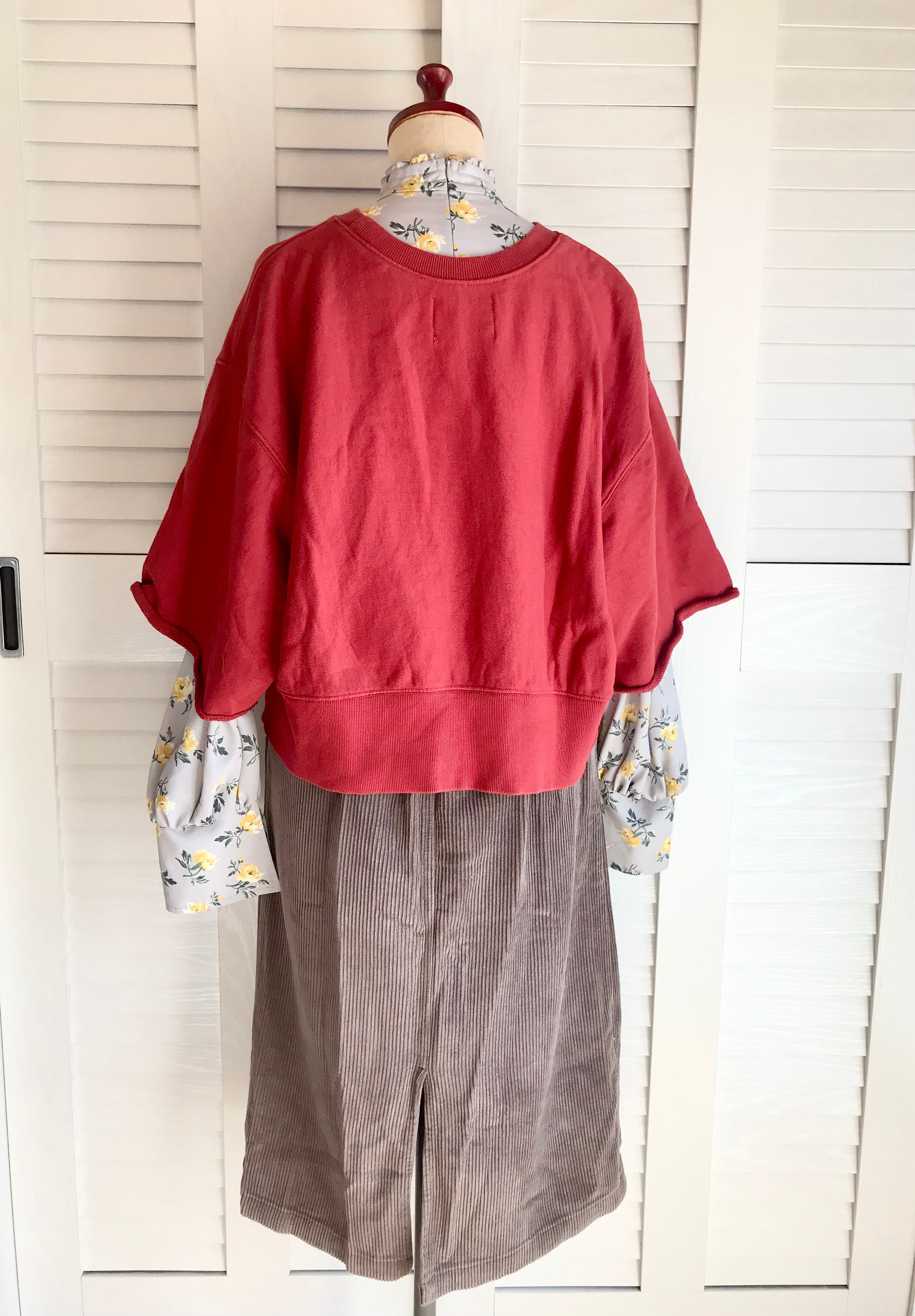 ・Ungrid リメイク風デザインスウェット レッド 七分袖 ¥3,900-