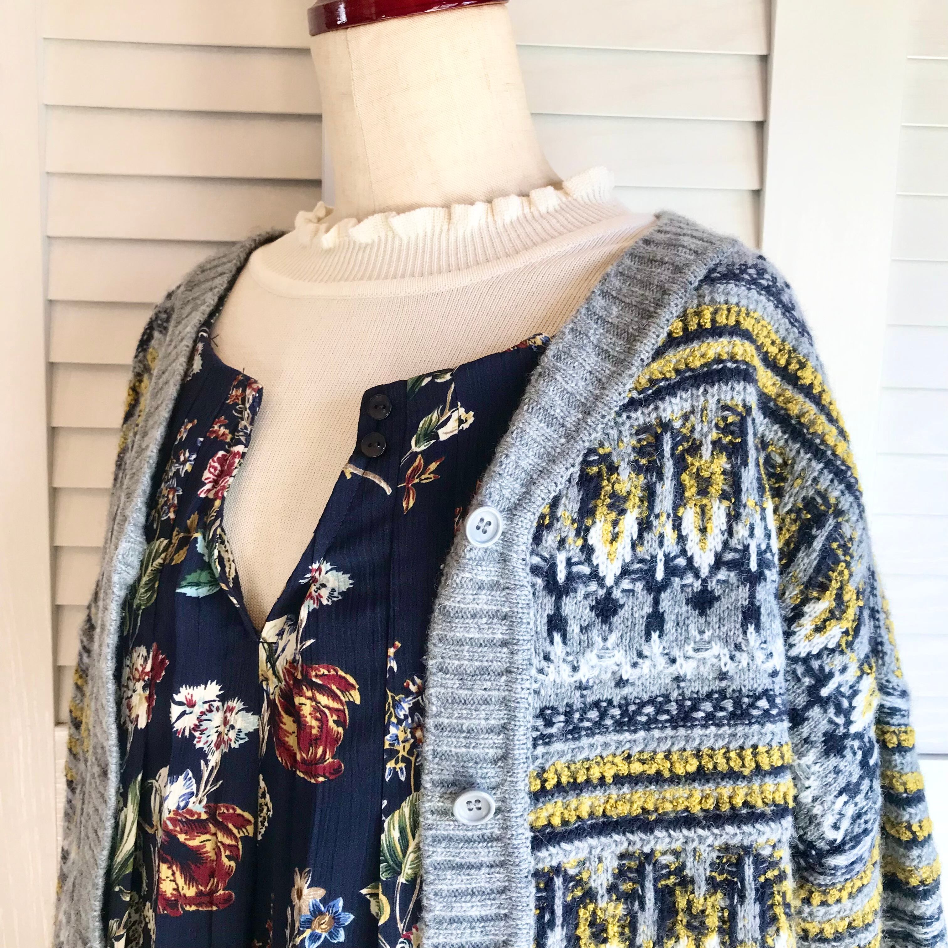 【提案コーデ⑥】柄on柄ボタニカル×フェアアイルコーデ