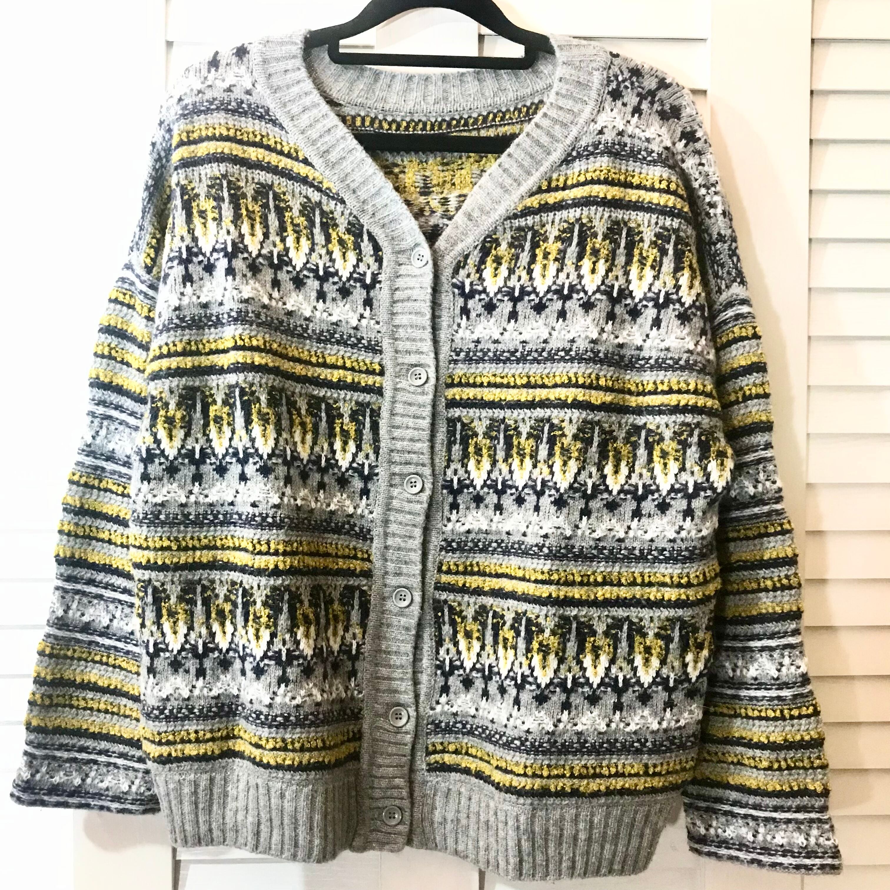 ・studio CLIP おじカワ フェアアイル柄ニットカーデ グレー ¥3,900-