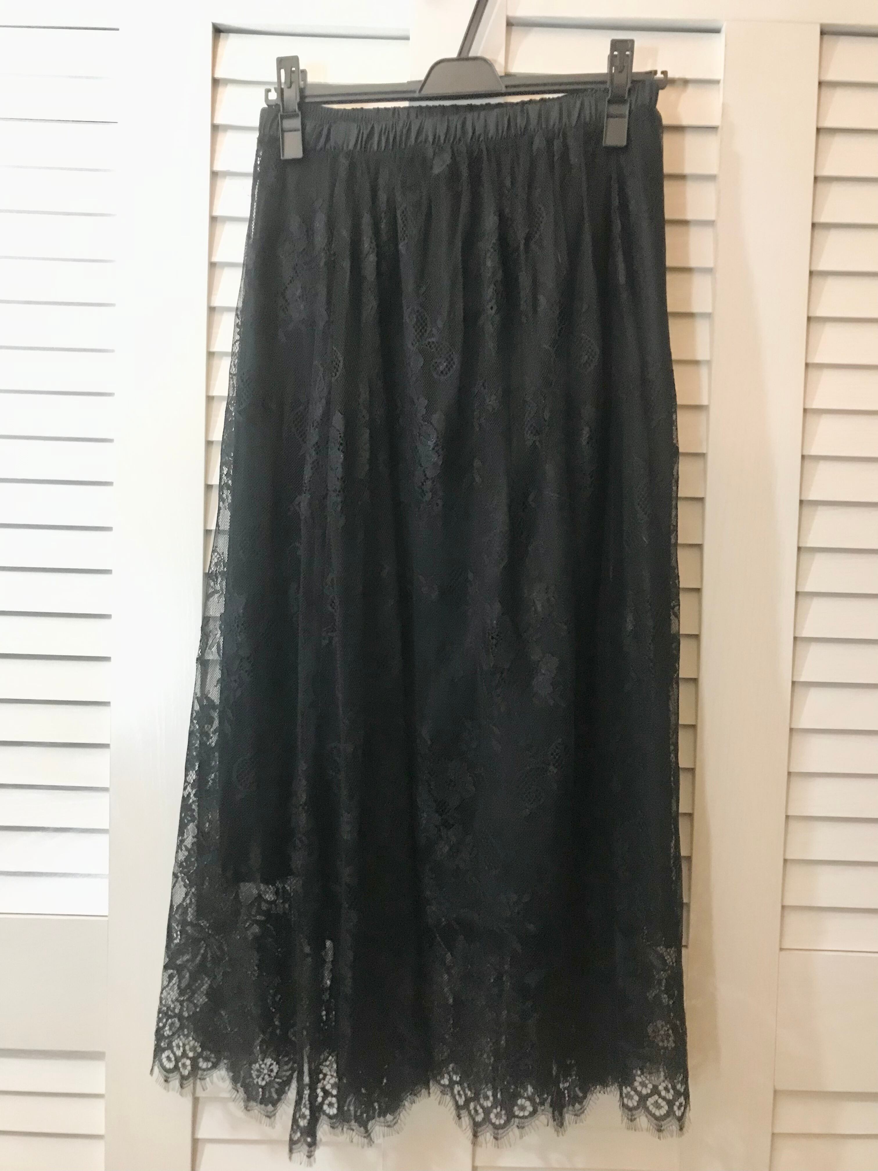 ・GLOBAL WORKS ペチコート付き総レースオーバースカート ブラック ¥3,900-