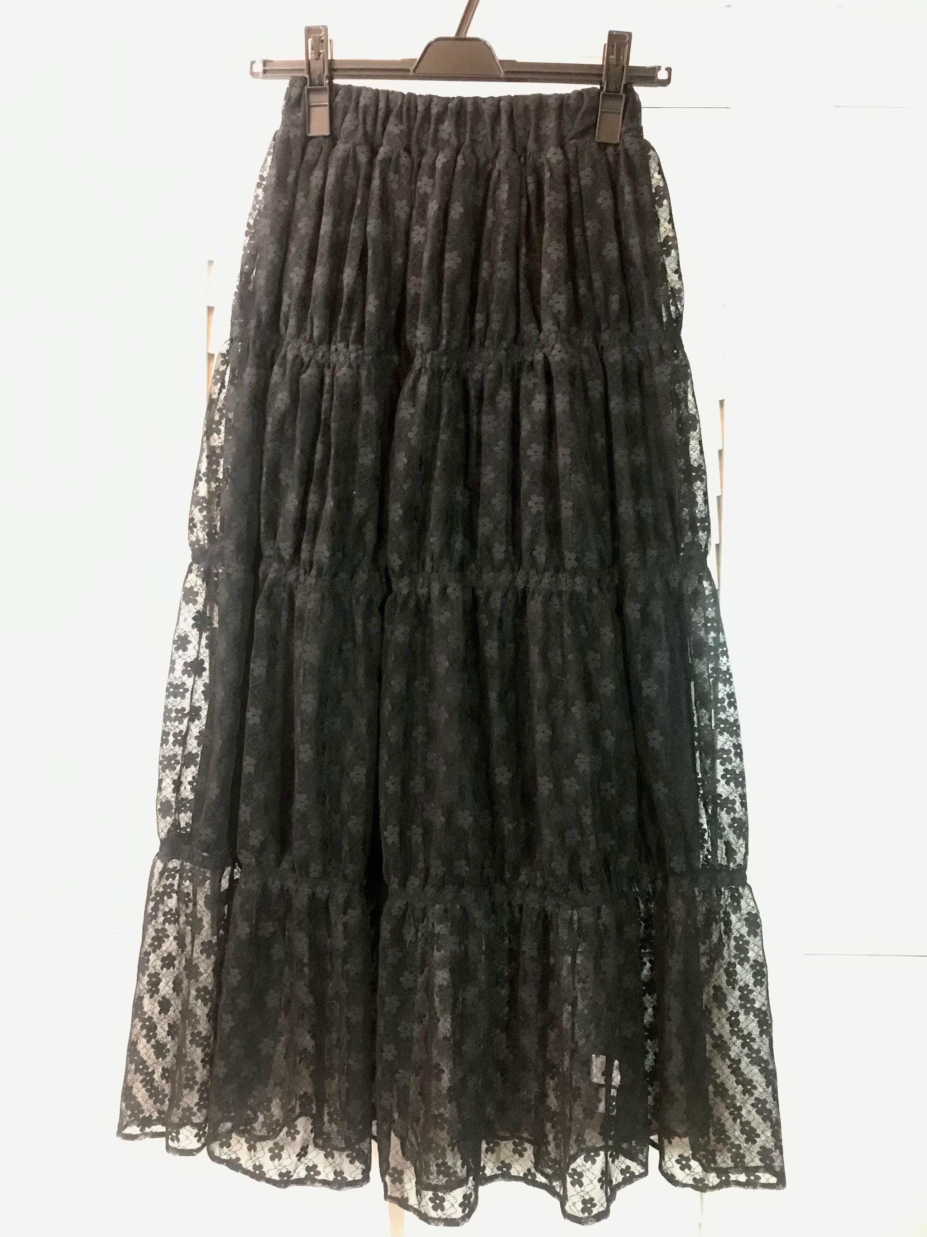 me+em select フラワー総レース4段ティアードオーバースカート ブラック