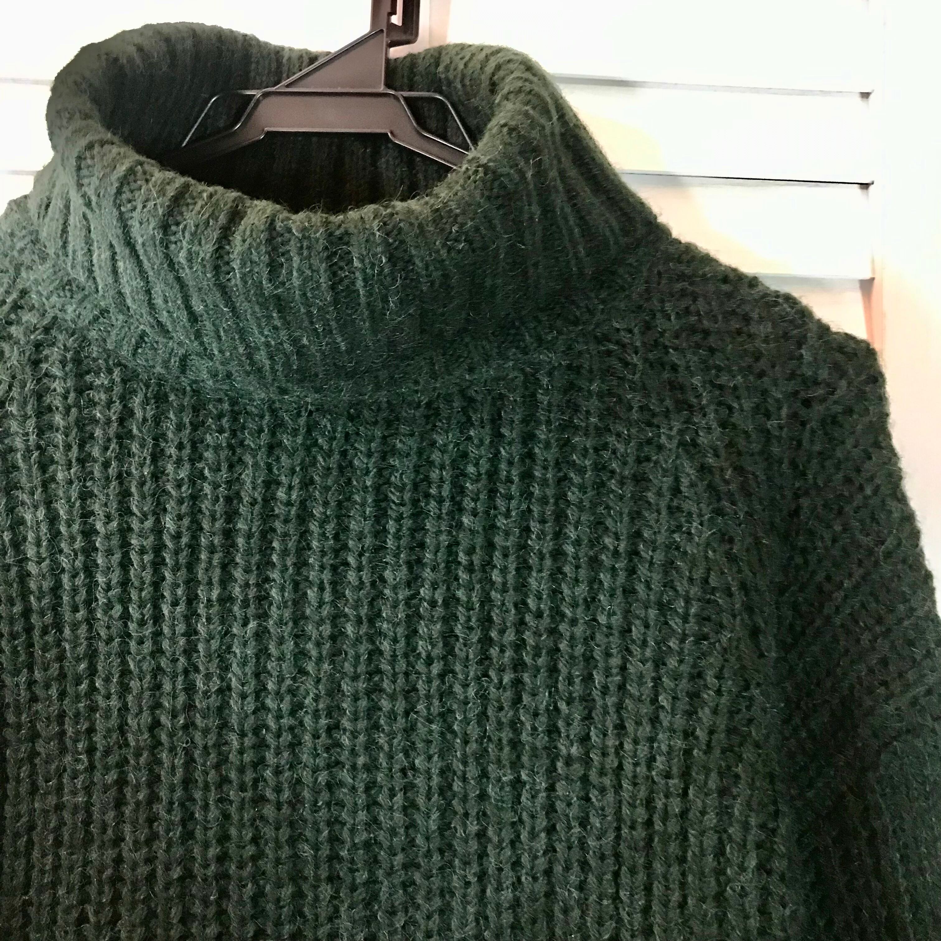 BEAMS 未使用タグ付き BIGカラーのケーブルバルーンスリーブ ウォッシャブルチャンキーニットセーター ダークグリーン