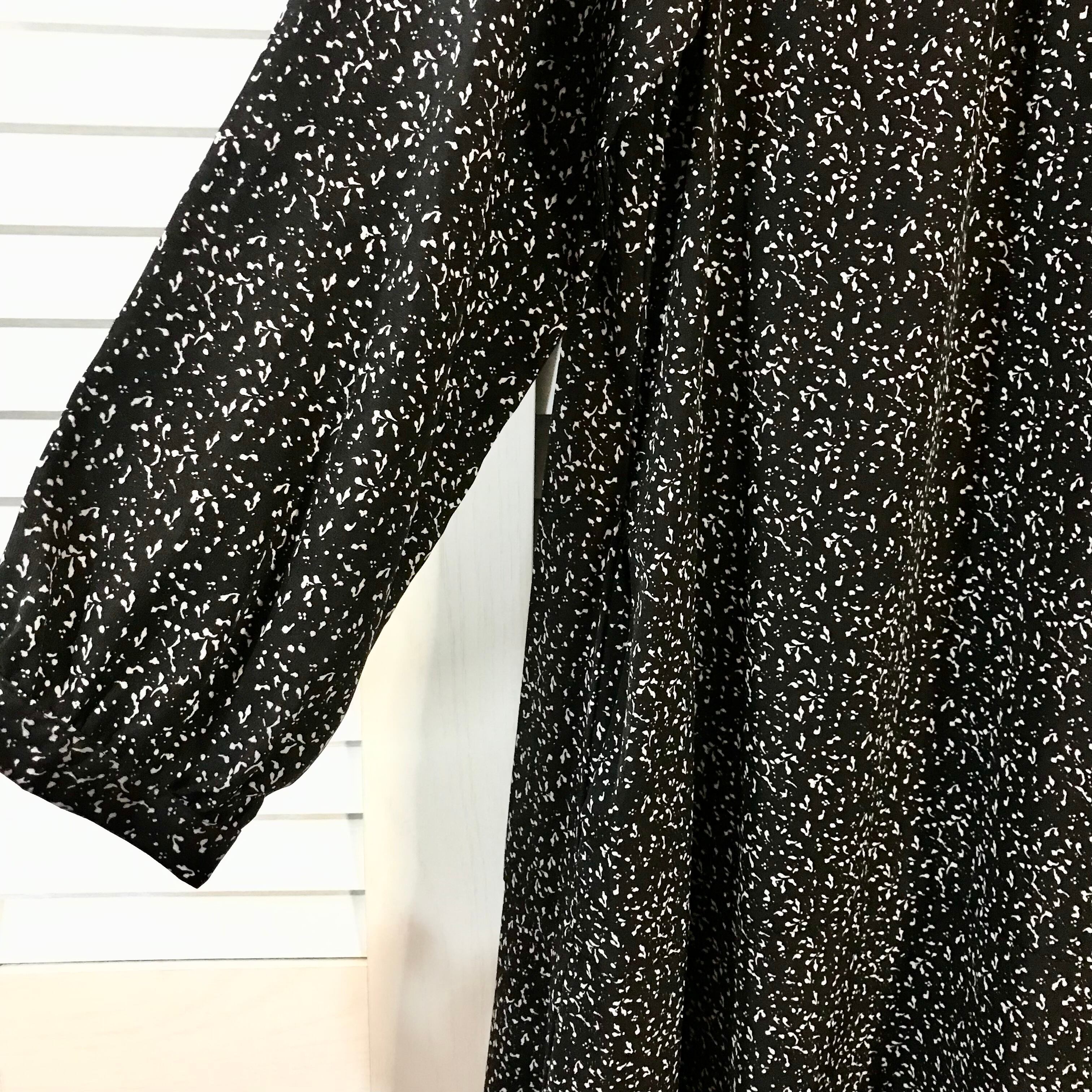 La-gemme モノトーン ジオメトリック柄 バルーンスリーブロングワンピ ブラック