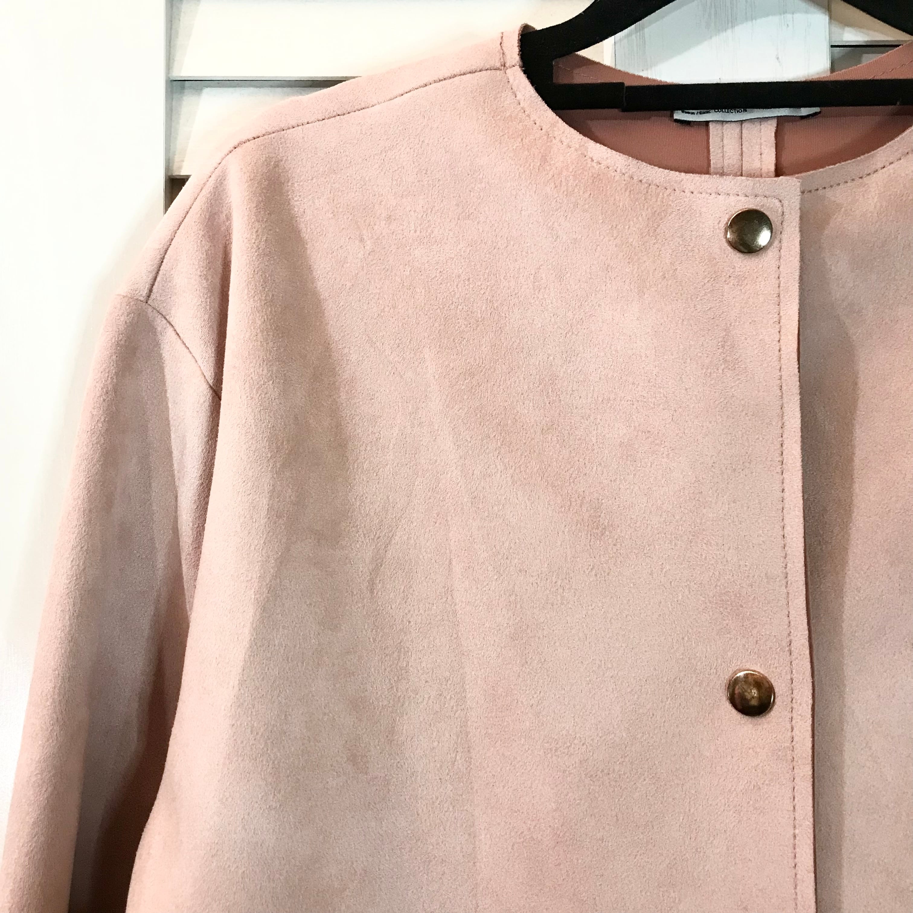 ZARA フェイクスエードノーカラーコート スモーキーピンク