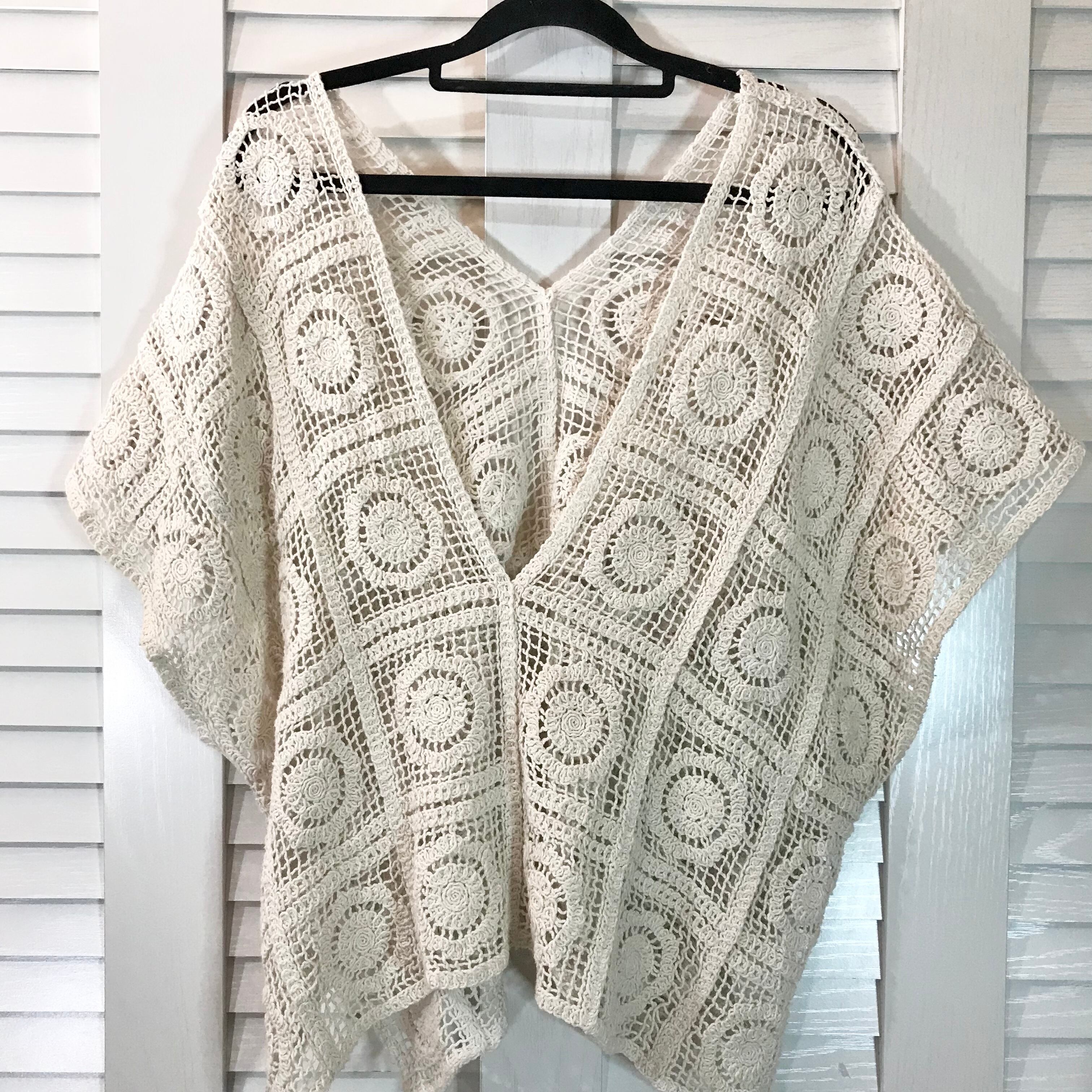 ・CIAOPANIC カギ編みモチーフ Vネックニット アイボリー ¥3,900-