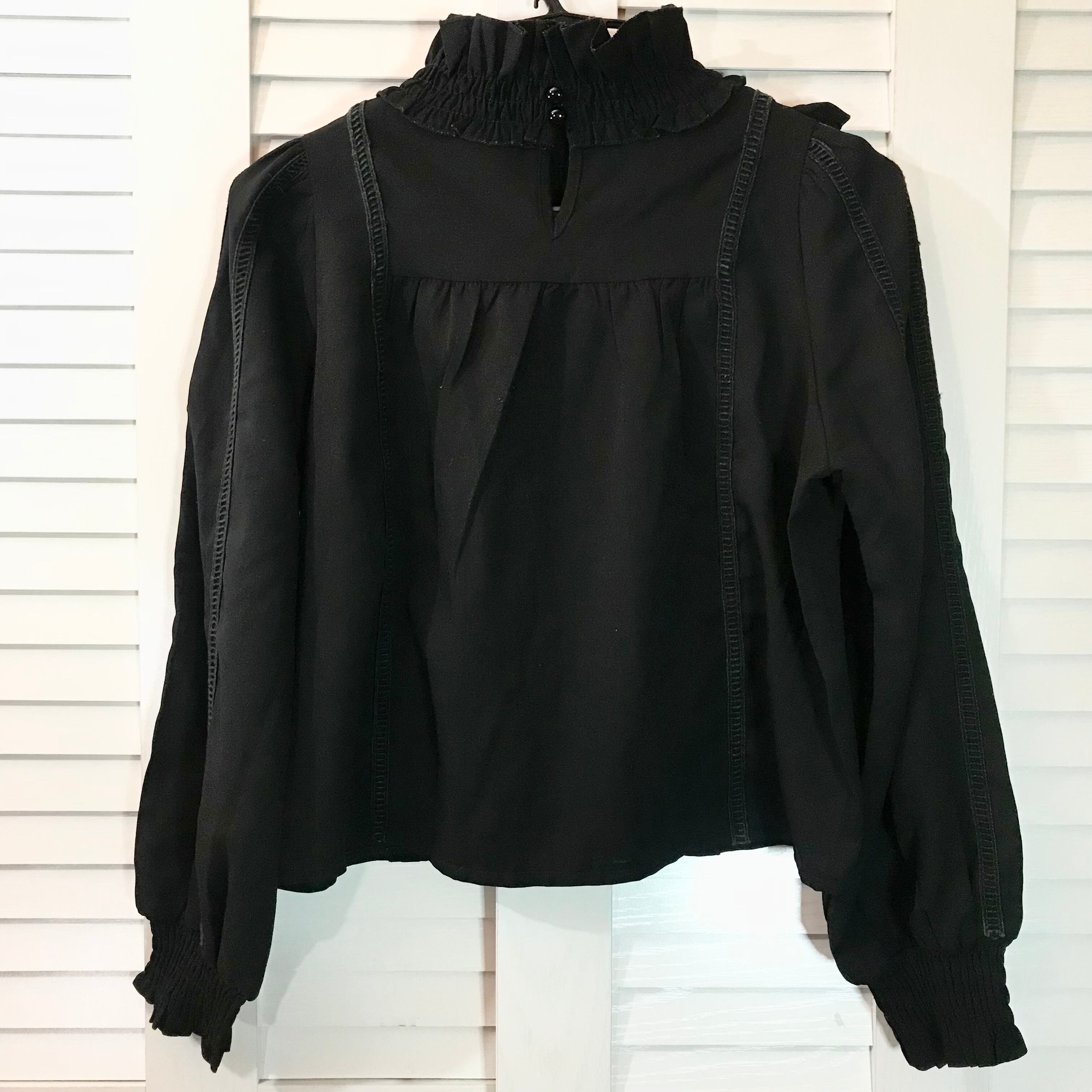 merlot プリーツディテールハイネックショート丈チュニックブラウス ブラック【B品】