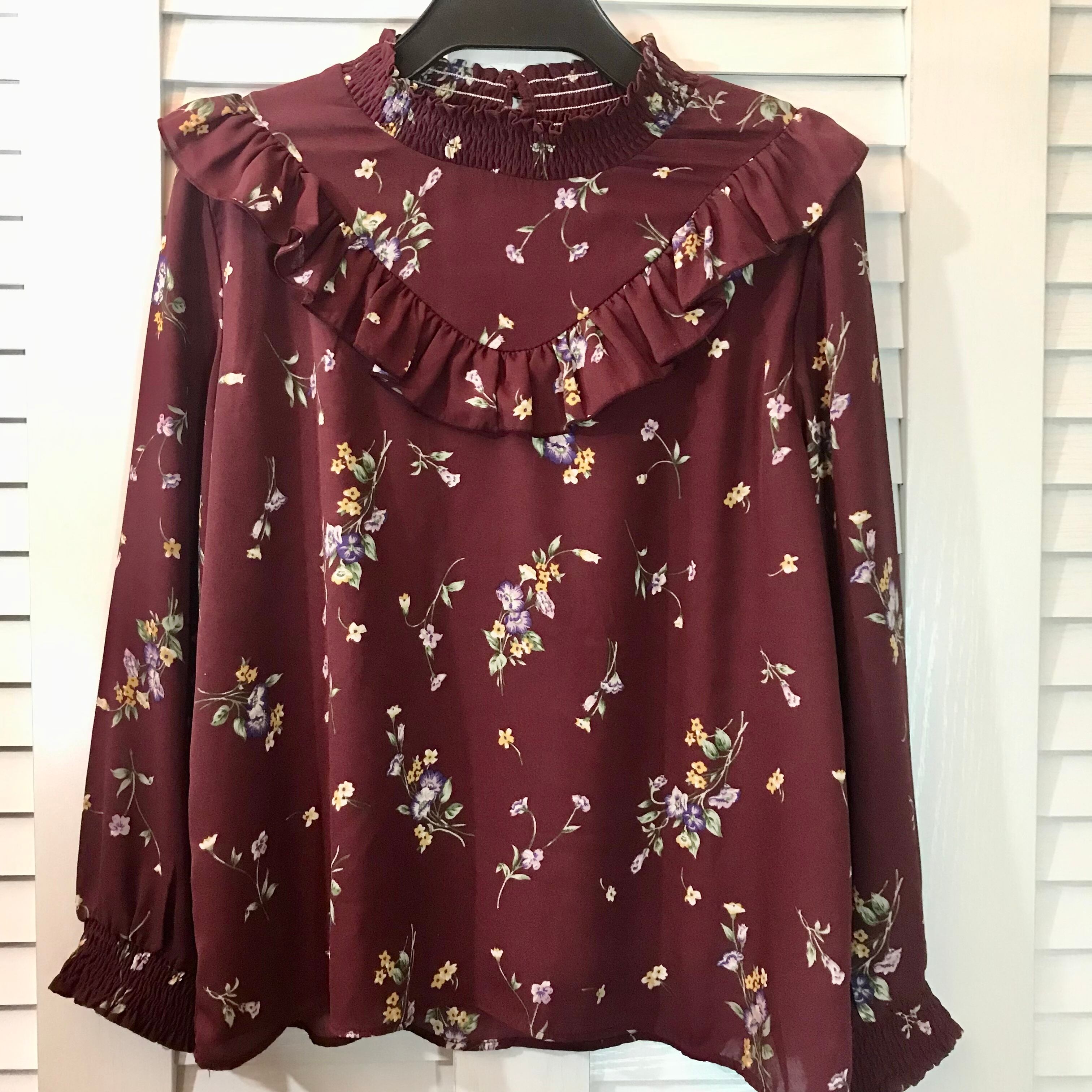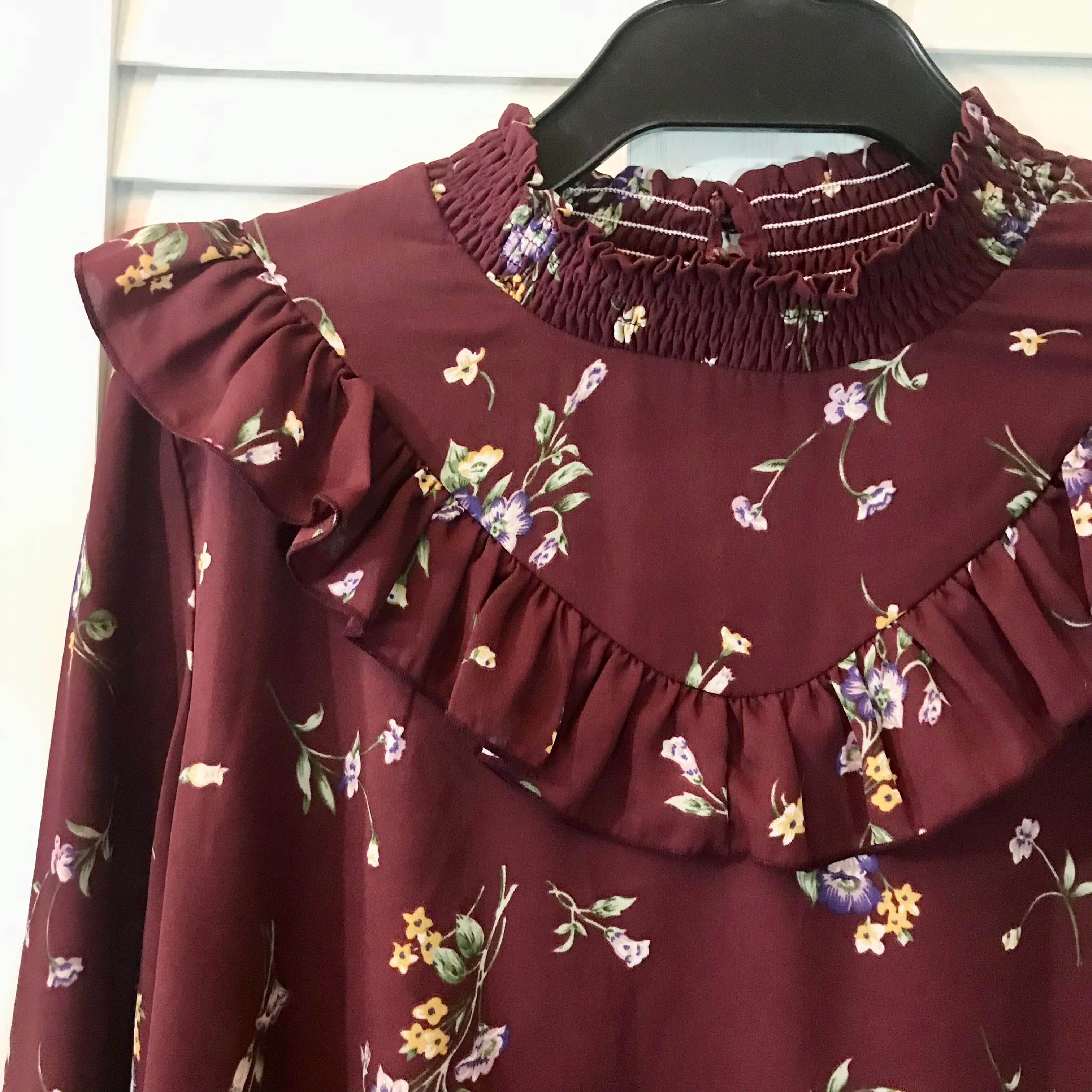 INGNI シャーリングネックのジョーゼットブラウス レッドブラウン
