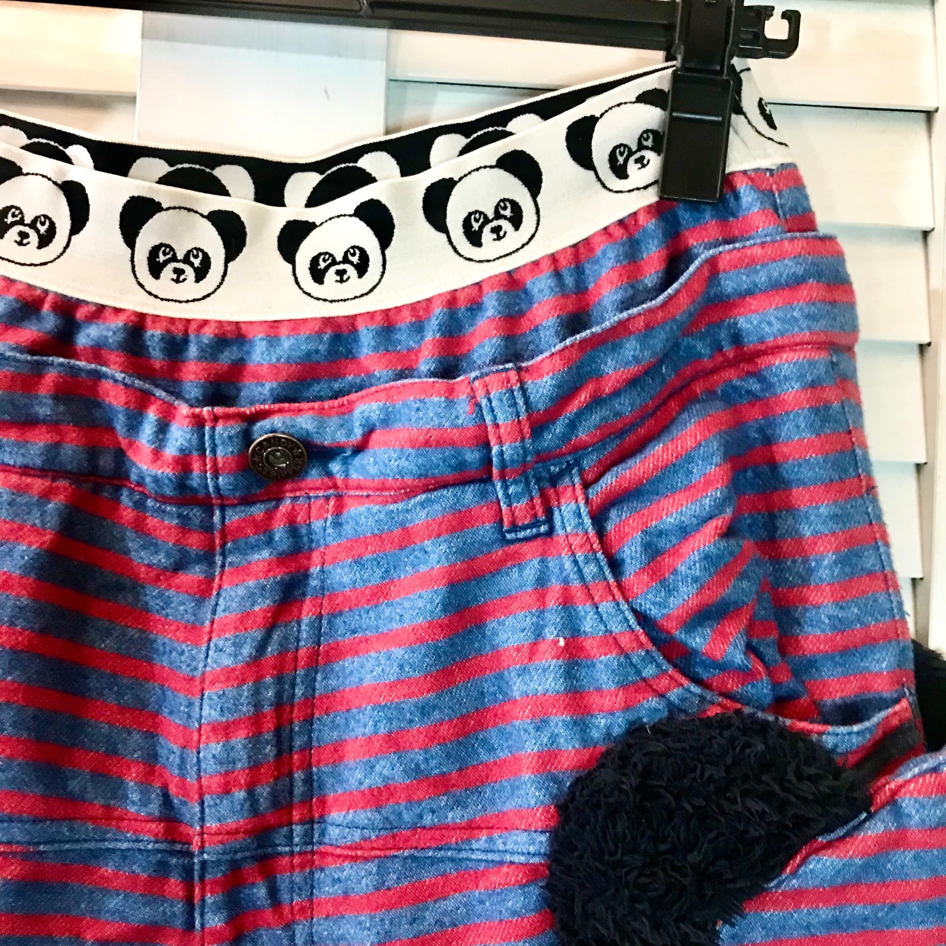 Candy Stripper 定価2万5千円!Wフランネルのボーダーパンダちゃんサルエルパンツ インディゴ×レッド
