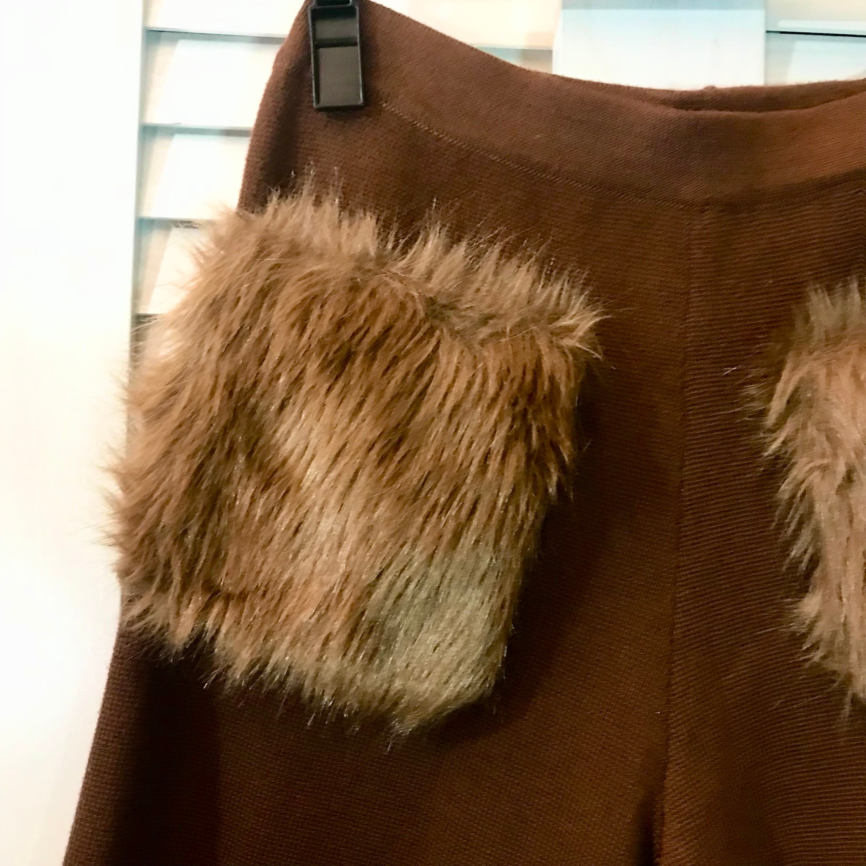 CECIL Mc BEE エコファーポケットのニットクロップドワイドパンツ ブラウン