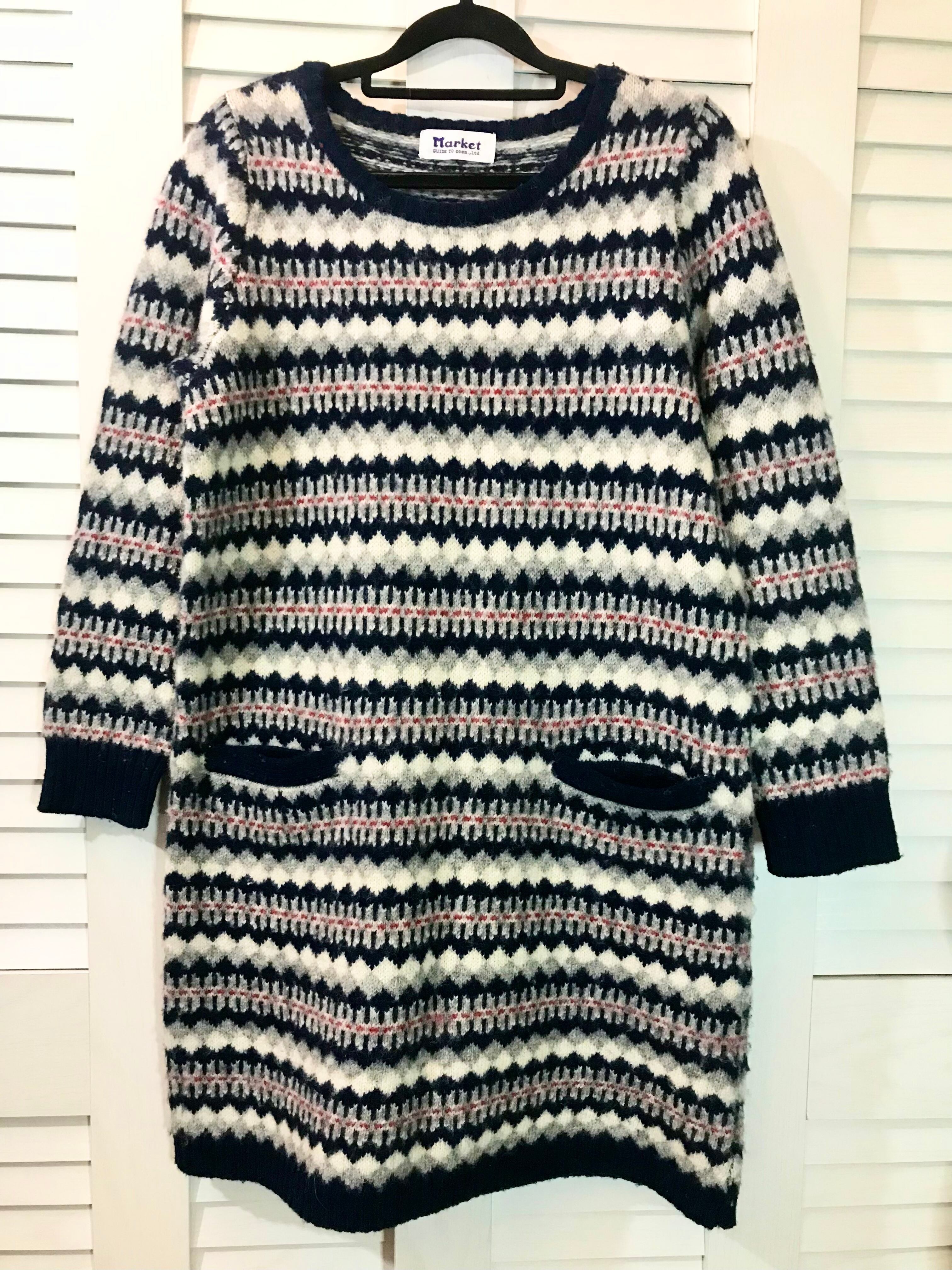 coen フェアアイル柄ウールニットワンピ ネイビー