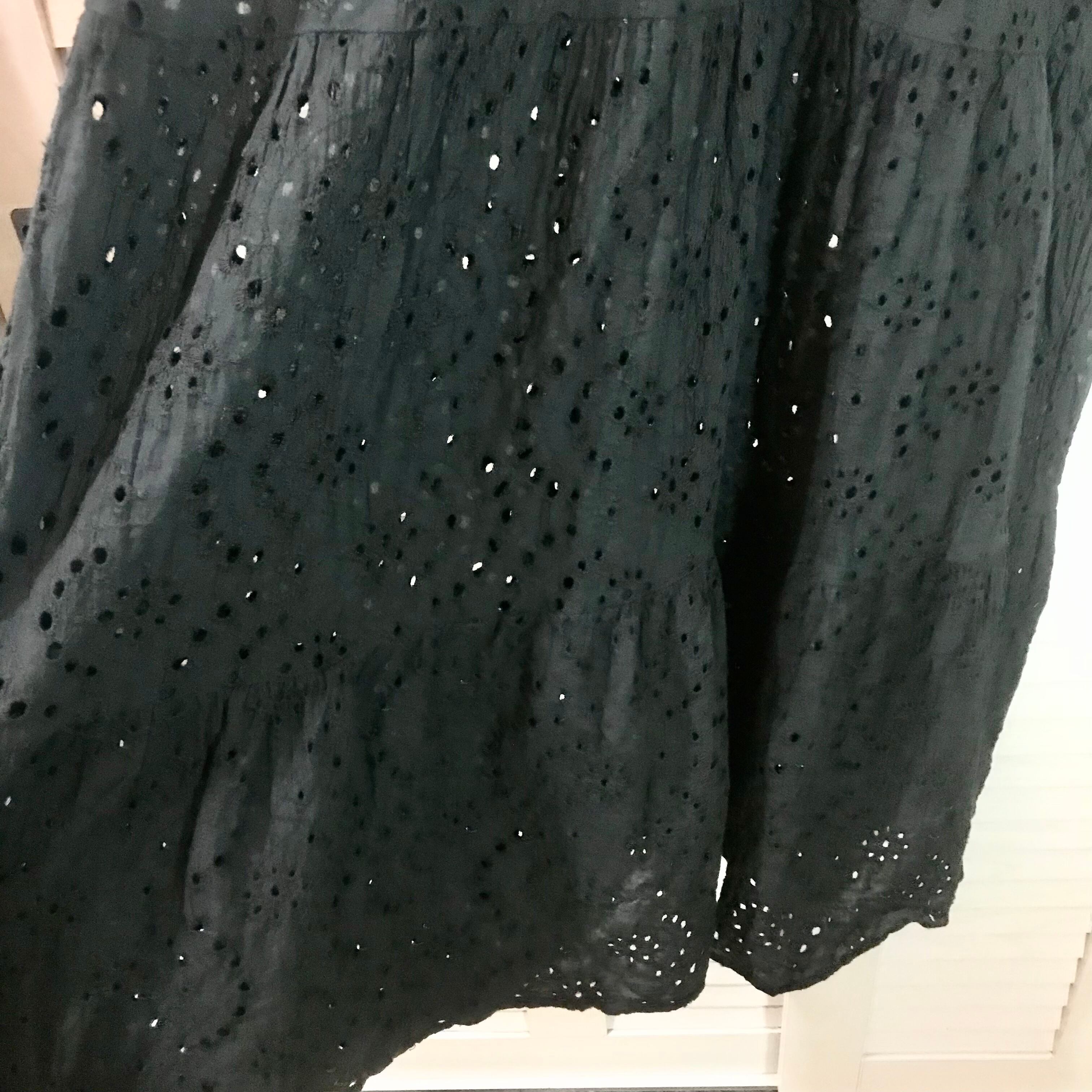 VIS コットンカッティングレース ティアードワンピ ブラック