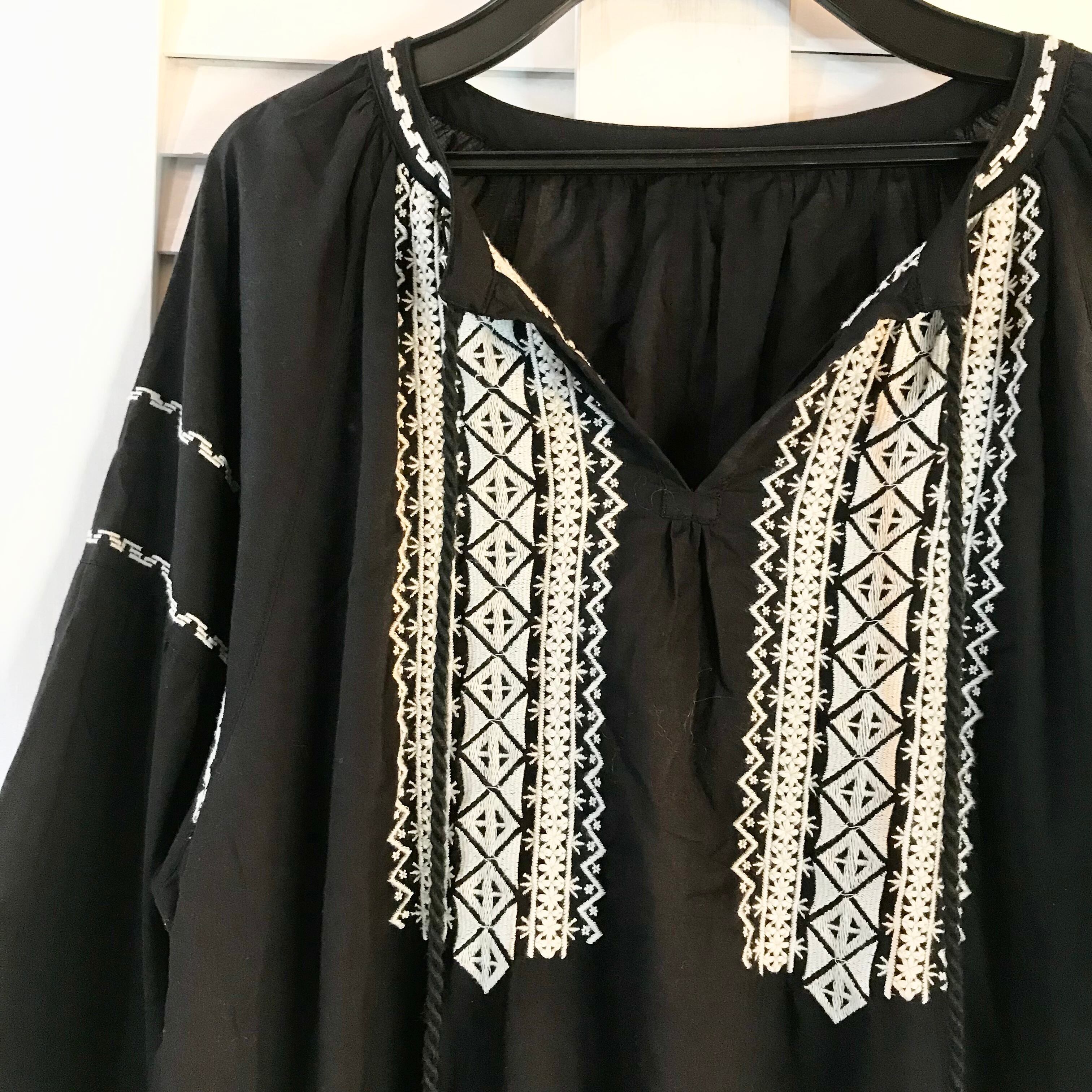 CRAFT STANDARD BOUTIQUE バルーンスリーブのボタニカル刺繍ロングチュニックワンピ ブラック