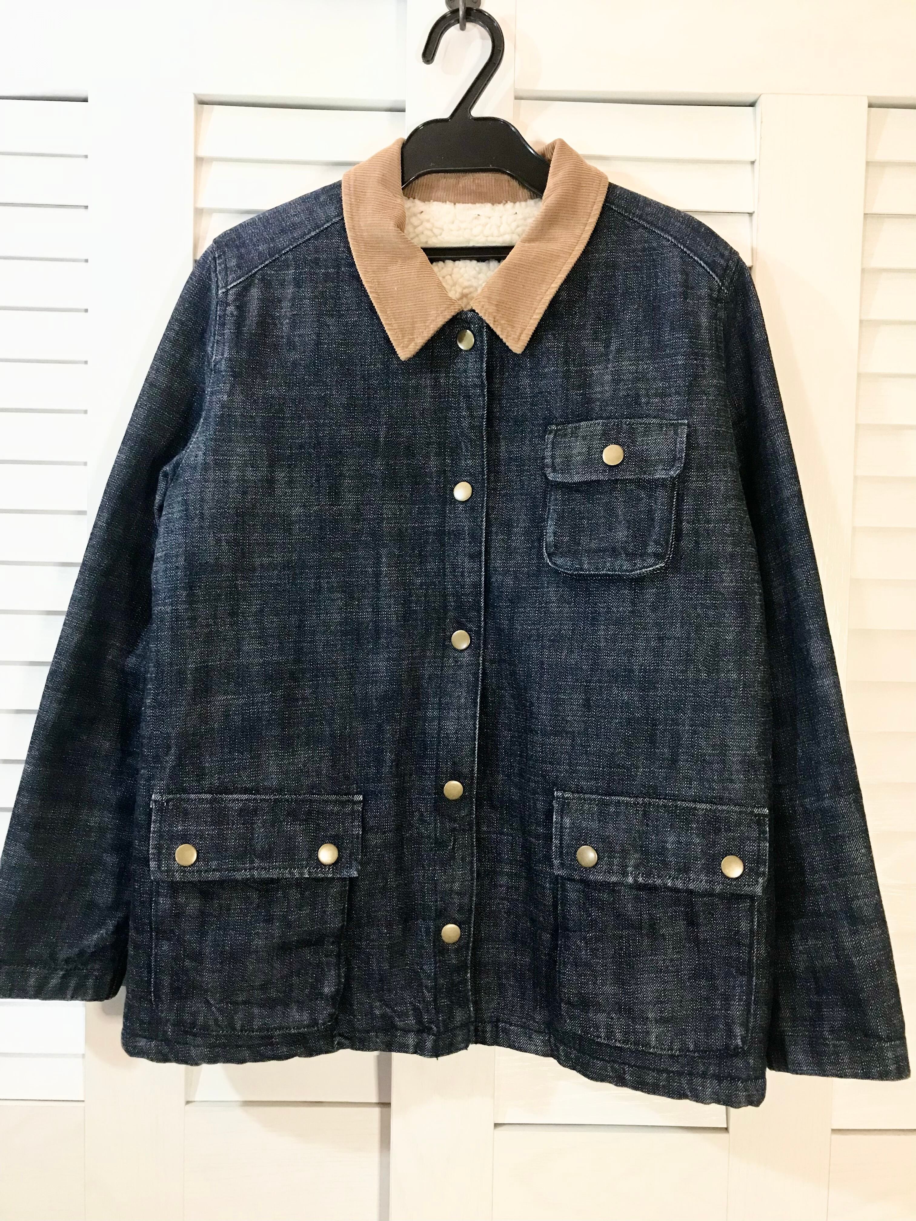 MARINE & WORK PARICI 70Sデッドストック風デニム コーデュロイカラー裏ボアカバーオール