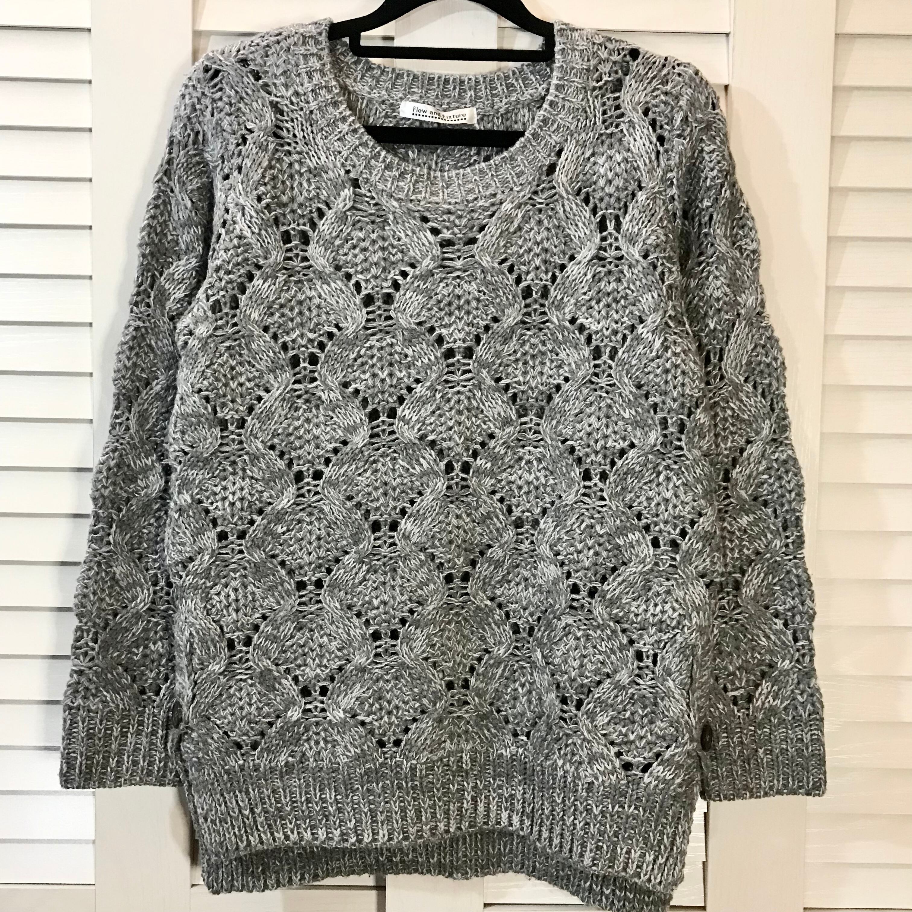 Flox and Fixture 変わり針抜き模様編み ミックスヤーンニットセーター グレー