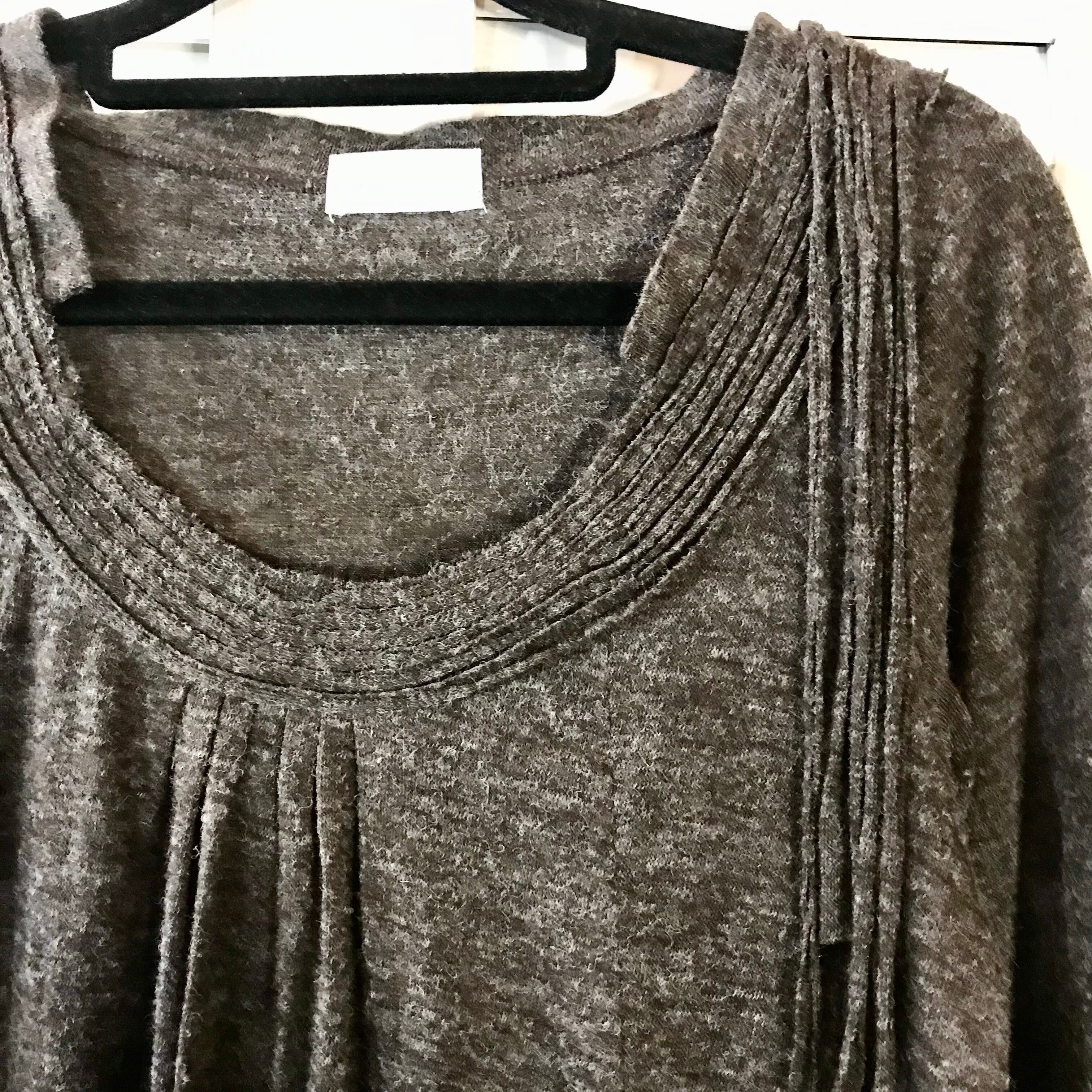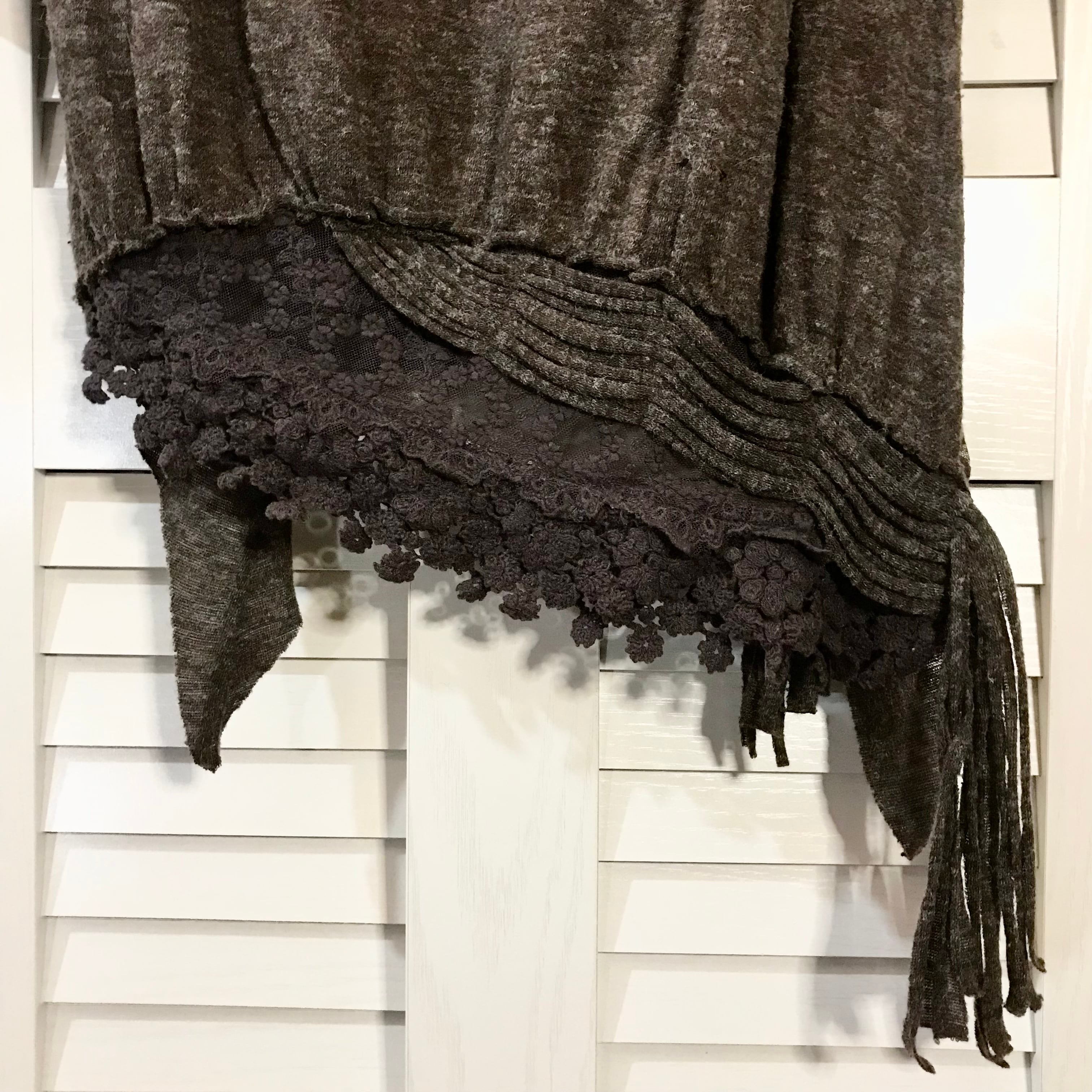 IORI イレギュラーデザインニットソーチュニック スパゲッティフリンジ/コットンレース/ピンタック ニュアンスブラウン