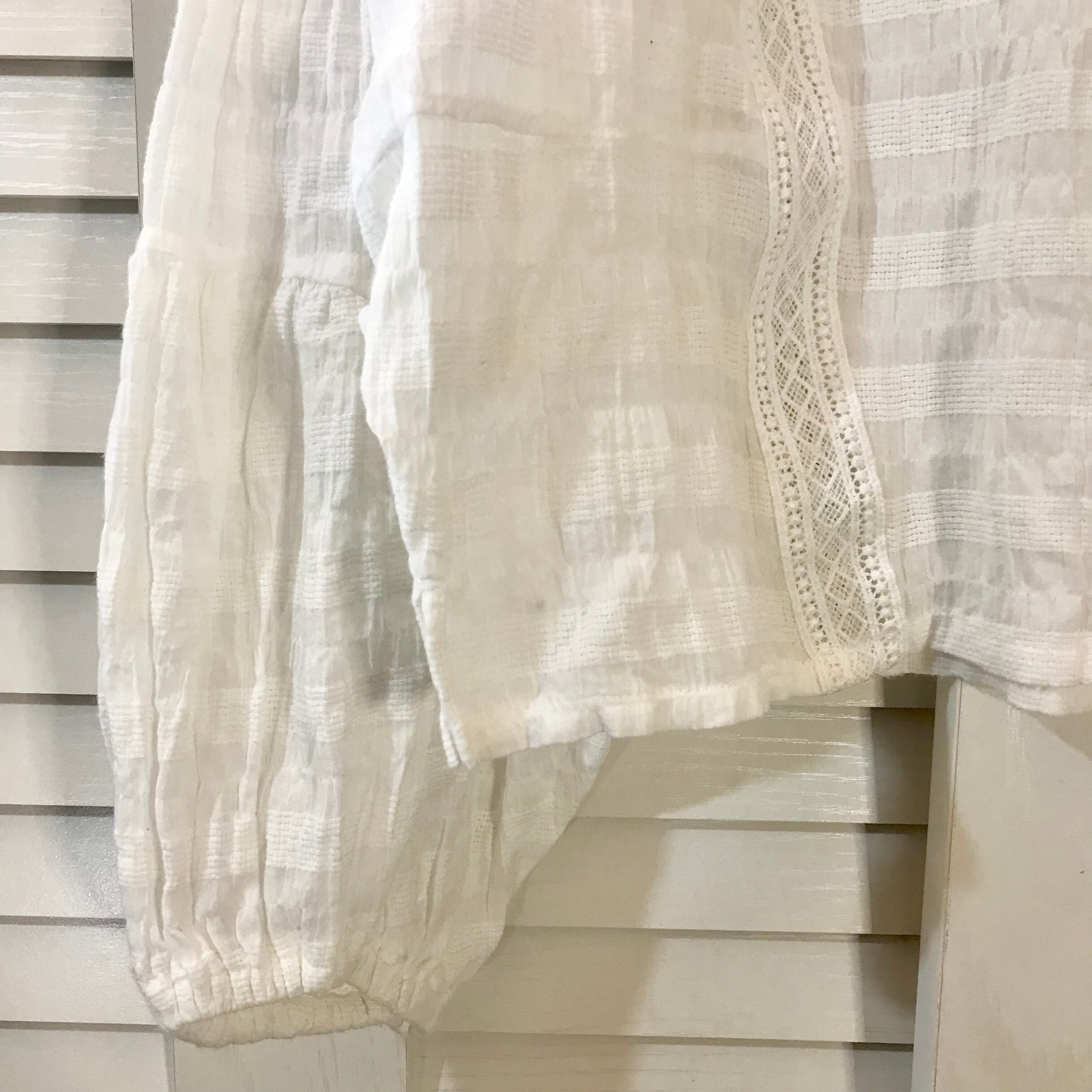 KBF 楊柳ボーダーのラウンドシームブラウス ホワイト