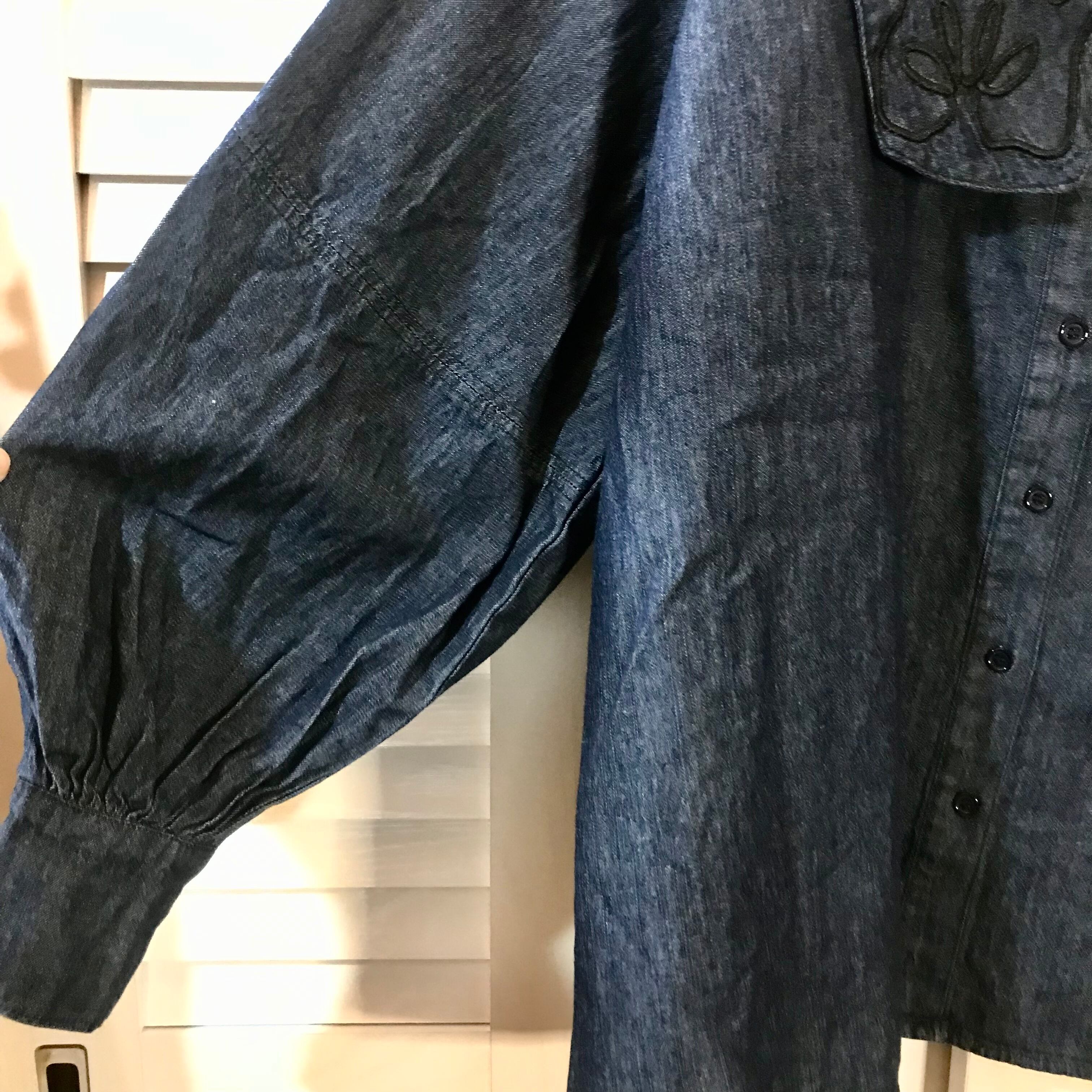 ・刺繍BIGカラーインディゴブラウス
