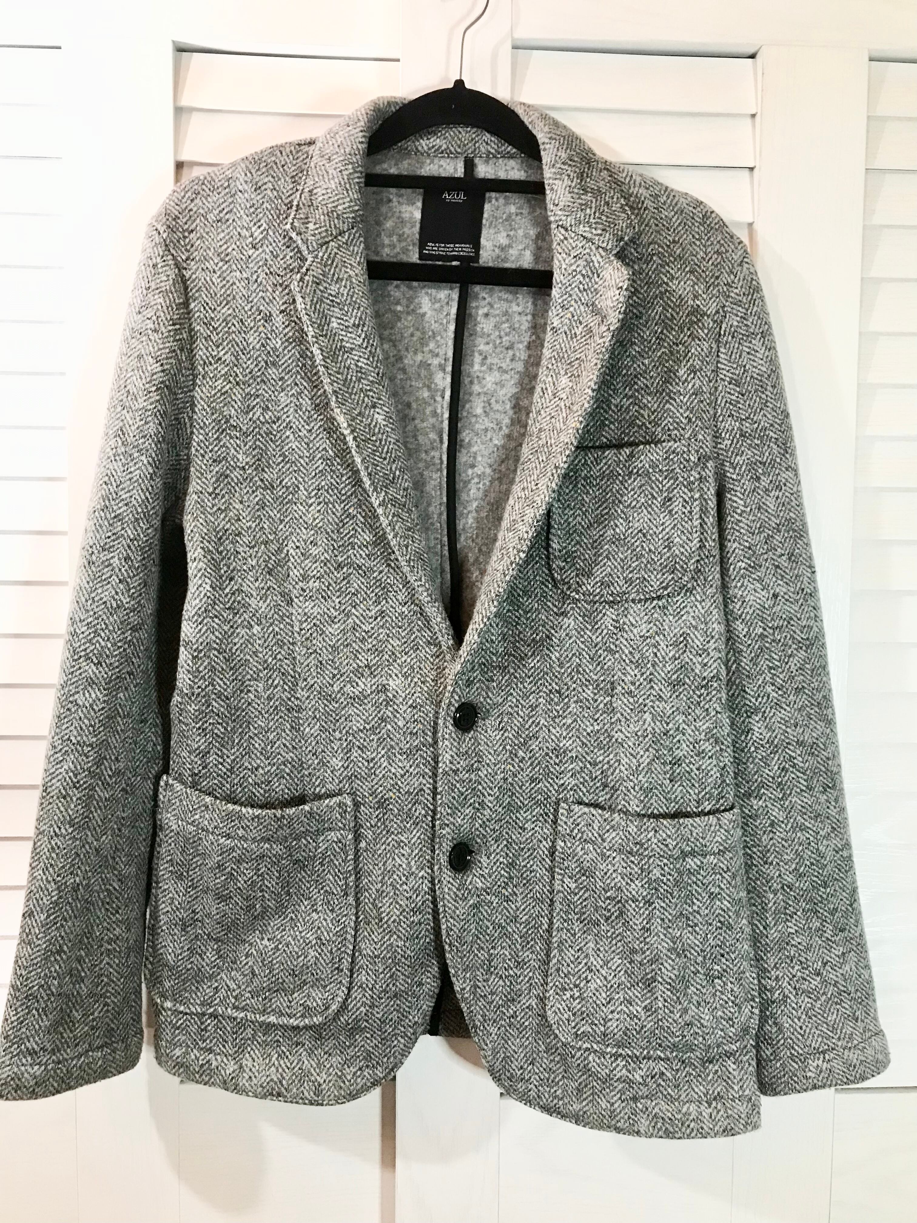 AZUL by moussy フリース素材のヘリンボーンカラーネップ メンズテーラードジャケット ライトグレー