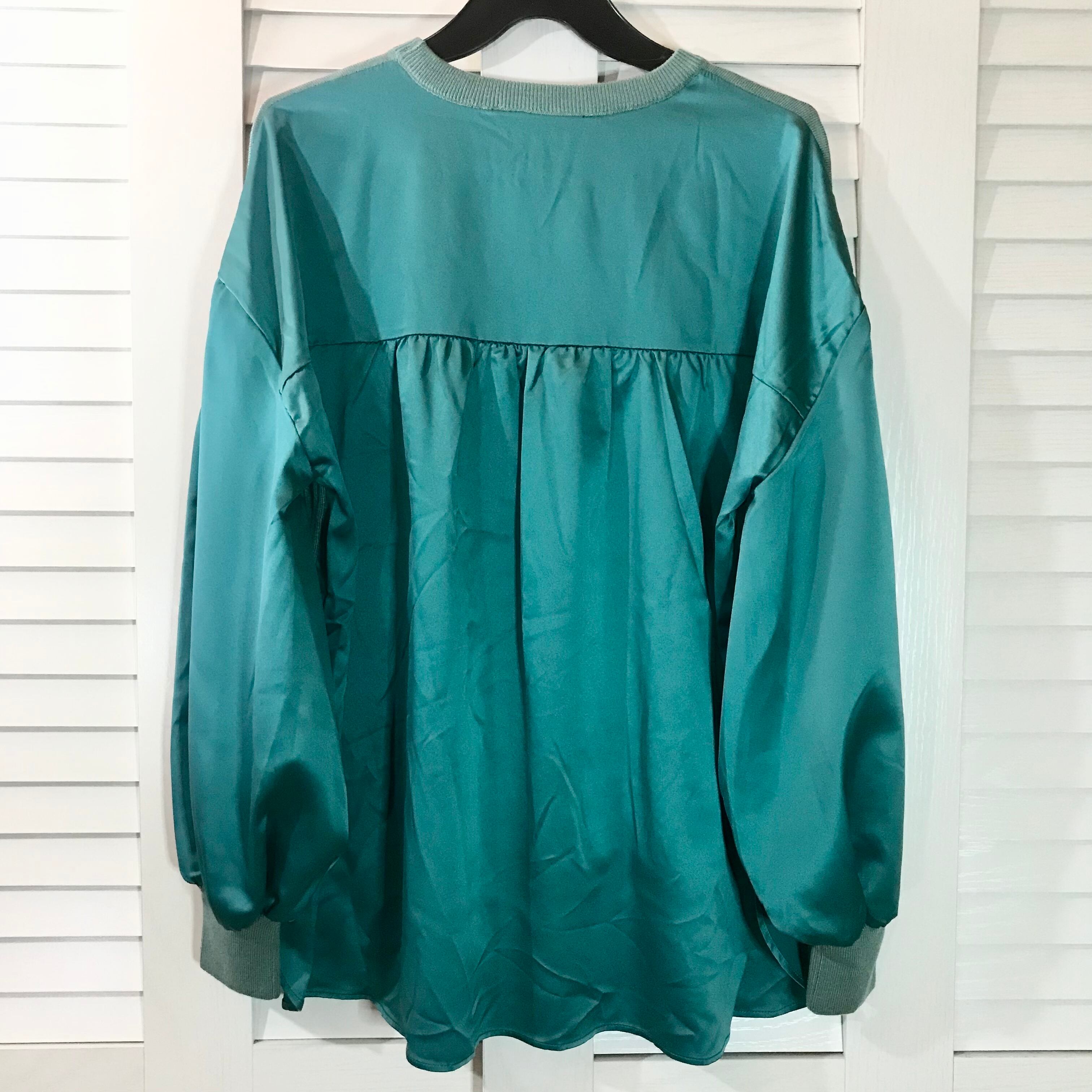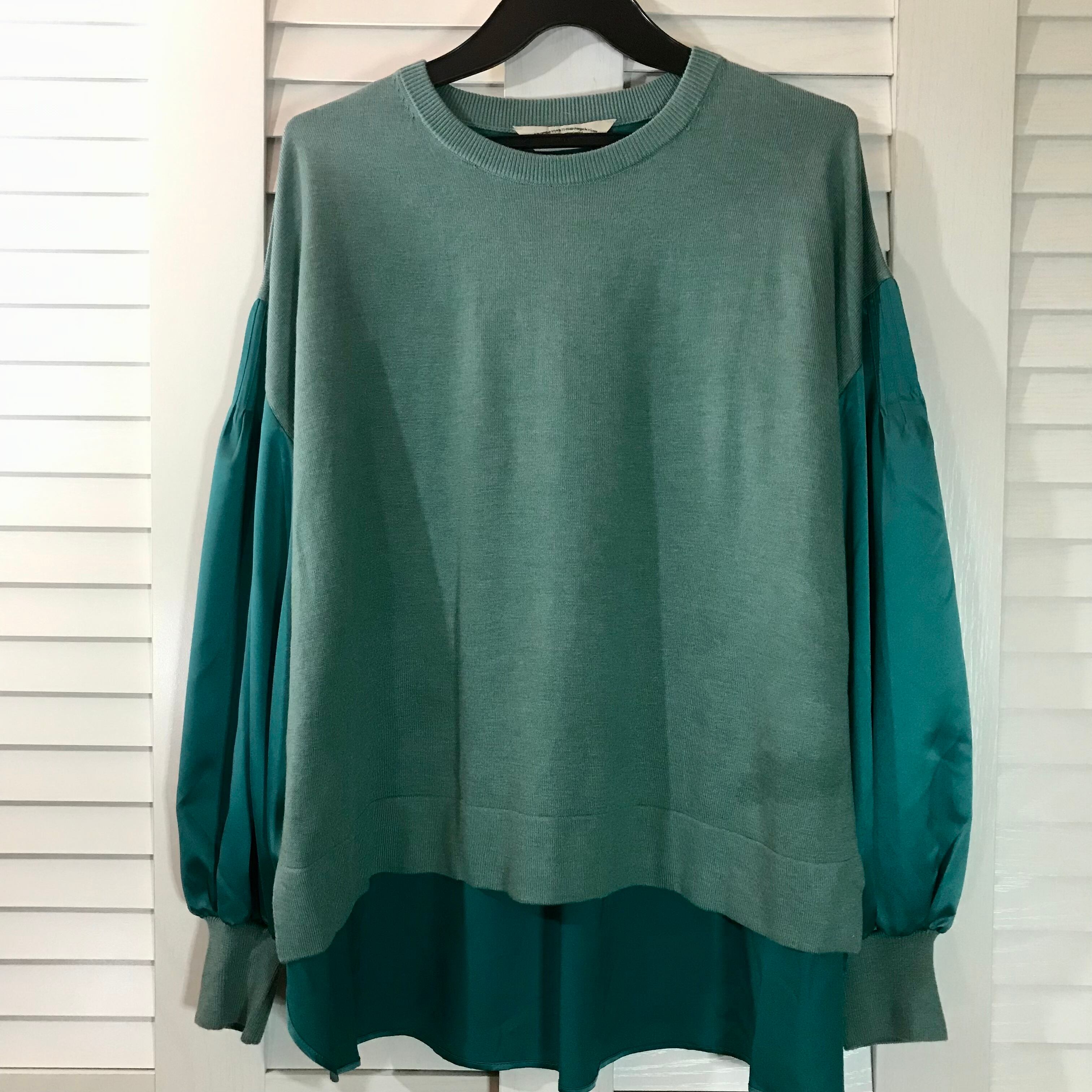 Torrazzo Donna ニットコンビのサテンバルーントップス ブルーグリーン