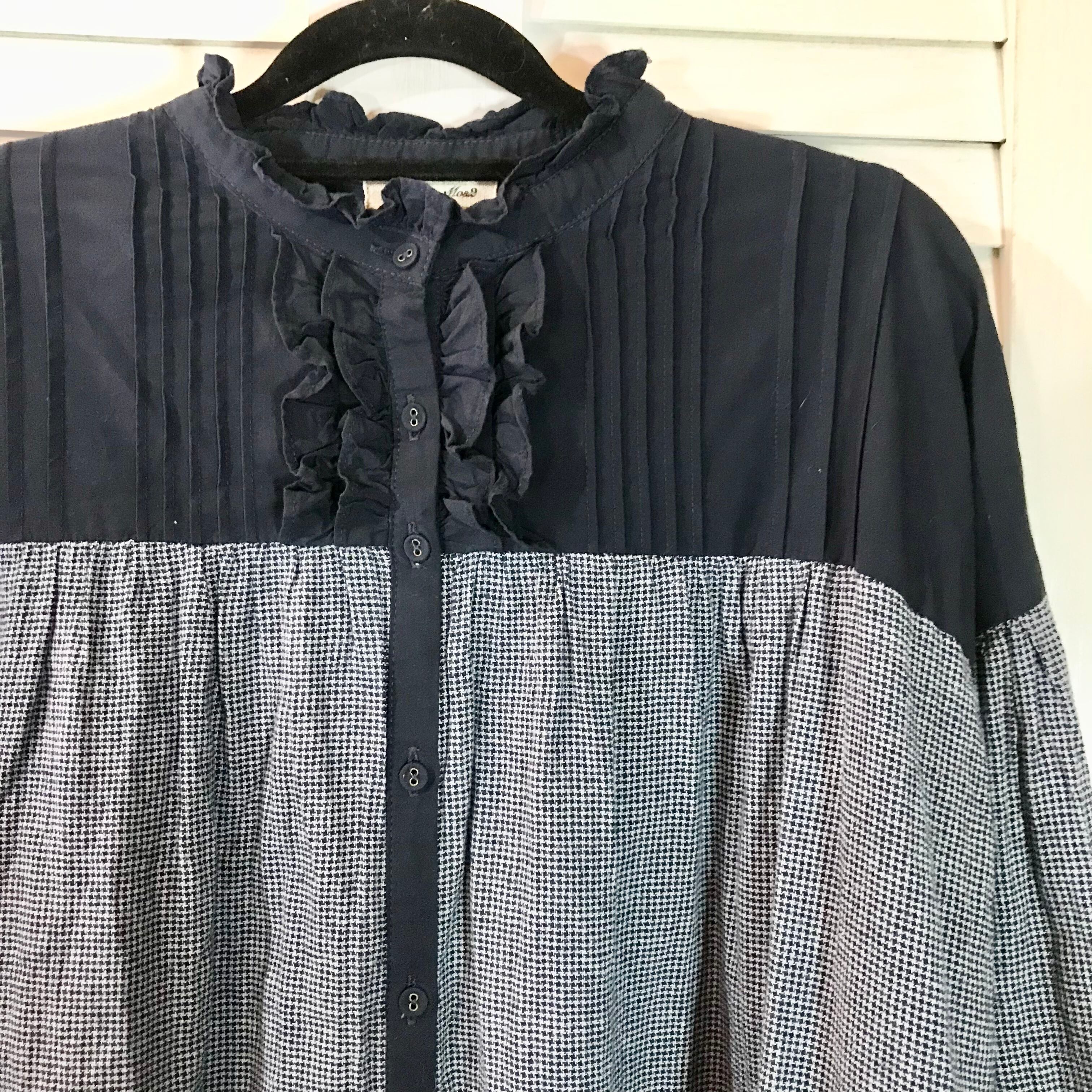 Samansa Mos2 ミドルネックフリルのピンタックヨーク千鳥格子ワンピ ネイビー