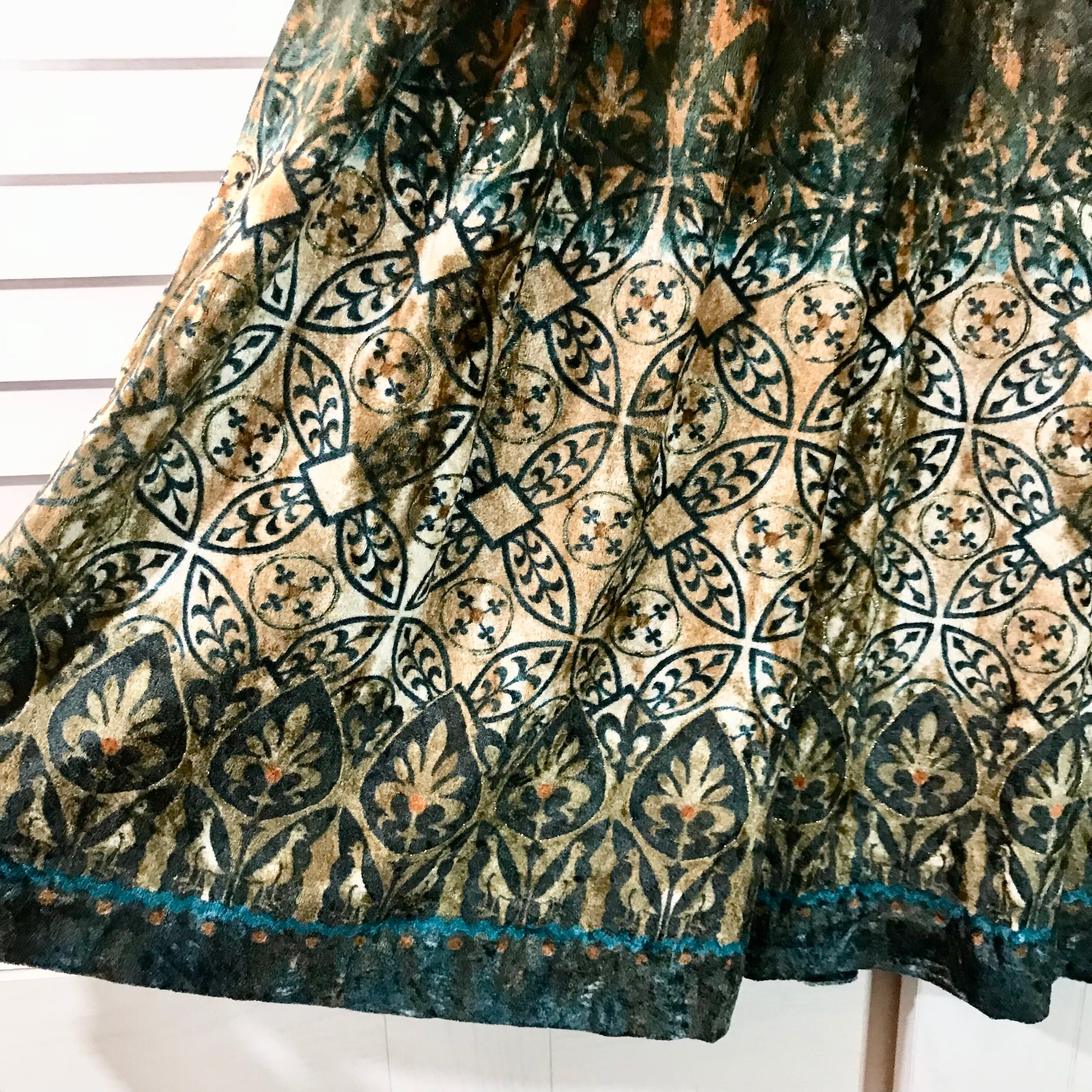 古着屋購入 珍!カラフルダマスク柄ベロアタックフレアースカート ミモレ丈