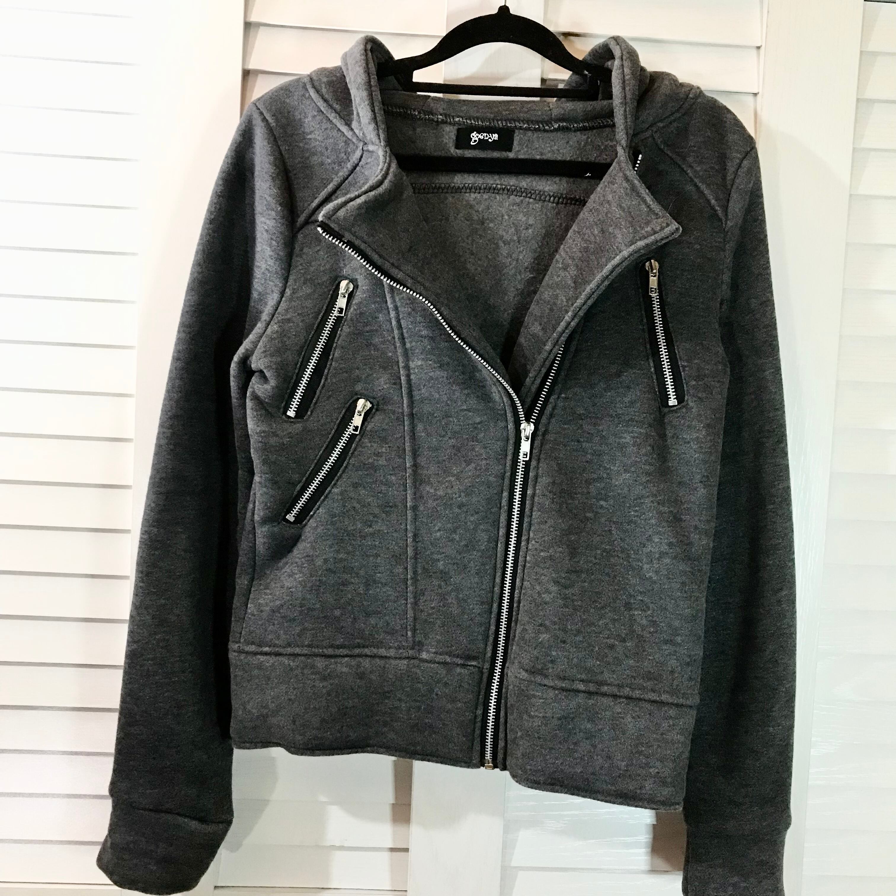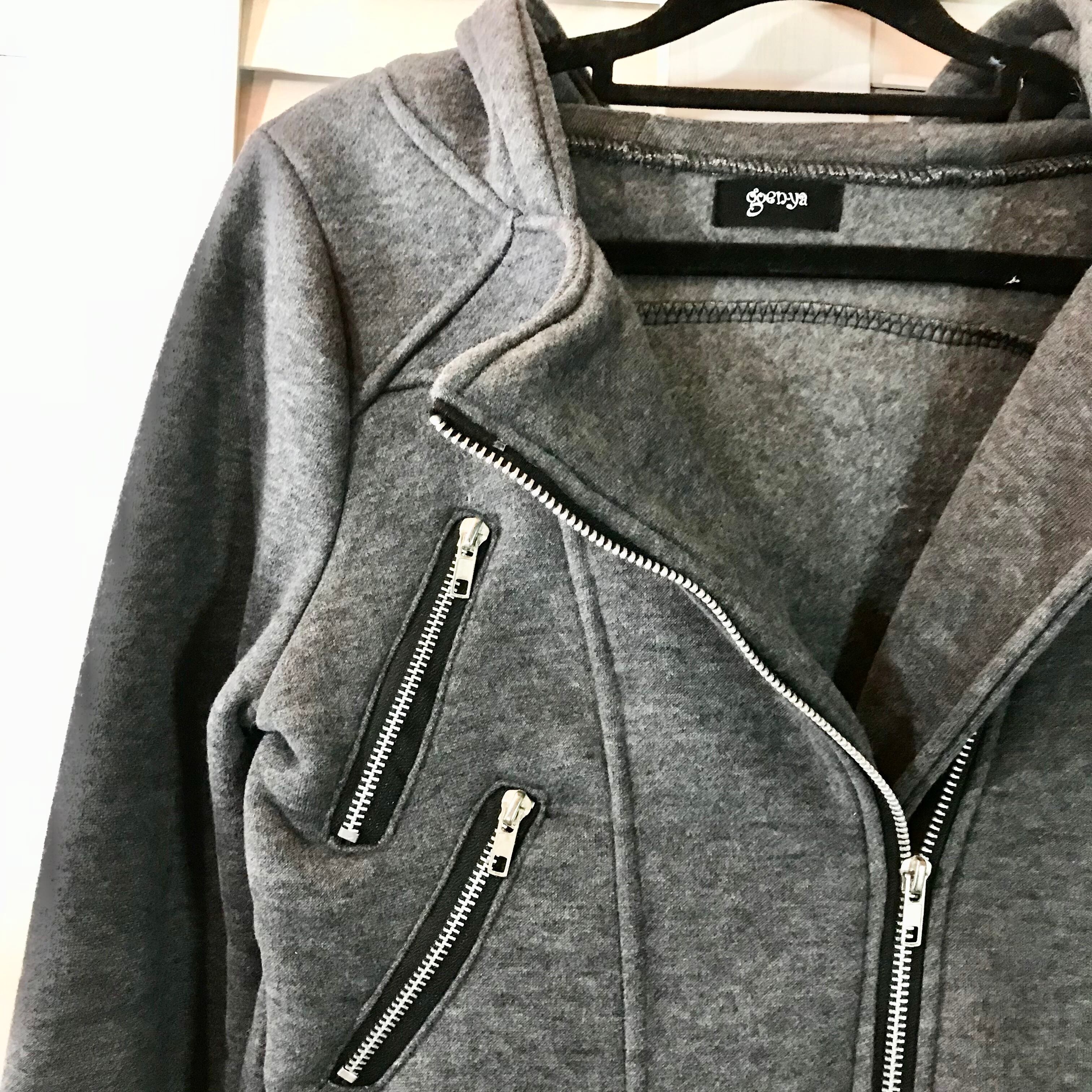 goen-ya 裏毛スウェットのダブルライダースデザイン フーディーブルゾン グレー
