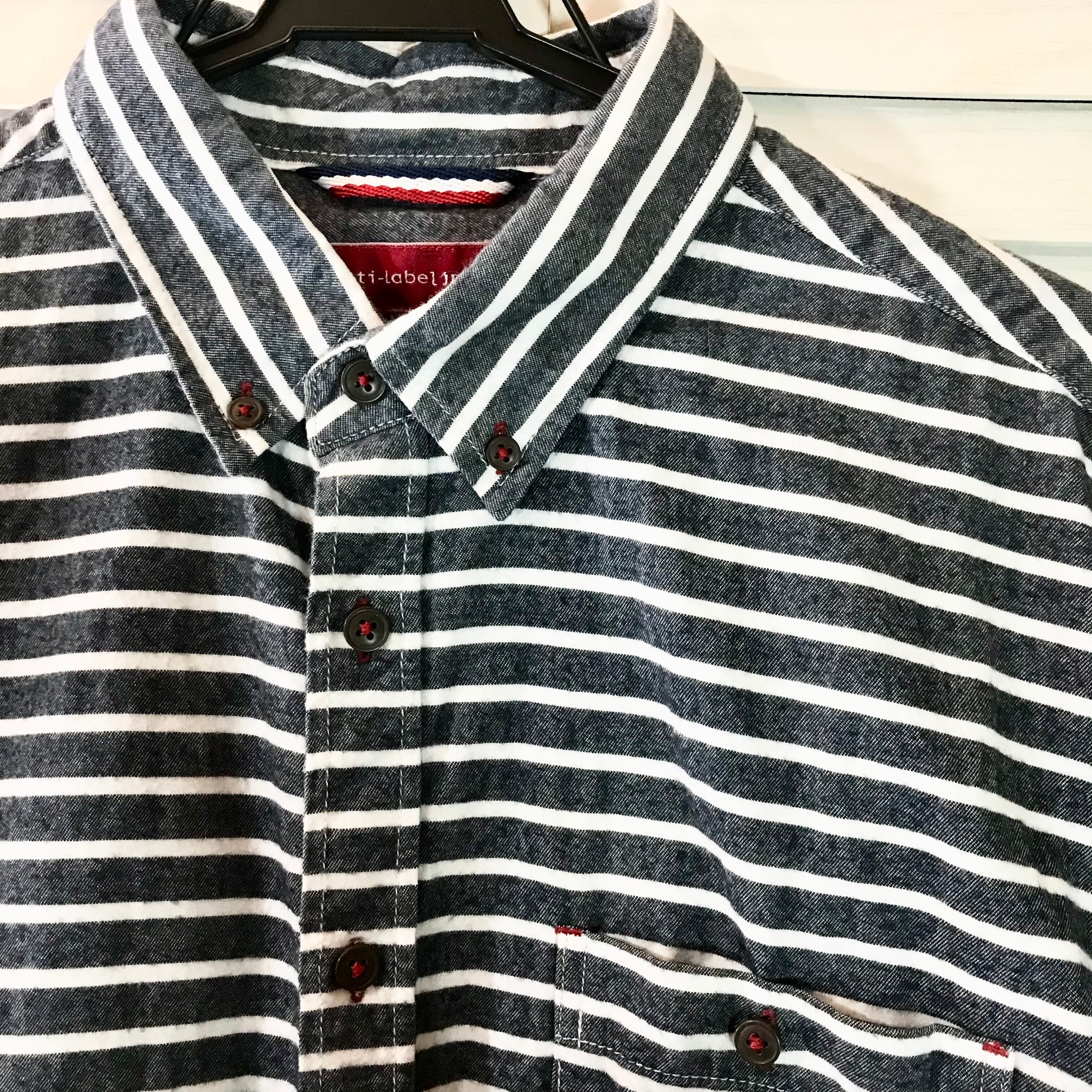 anti-Label JEAN トリコロールラインのインディゴボーダーボタンダウンネルシャツ