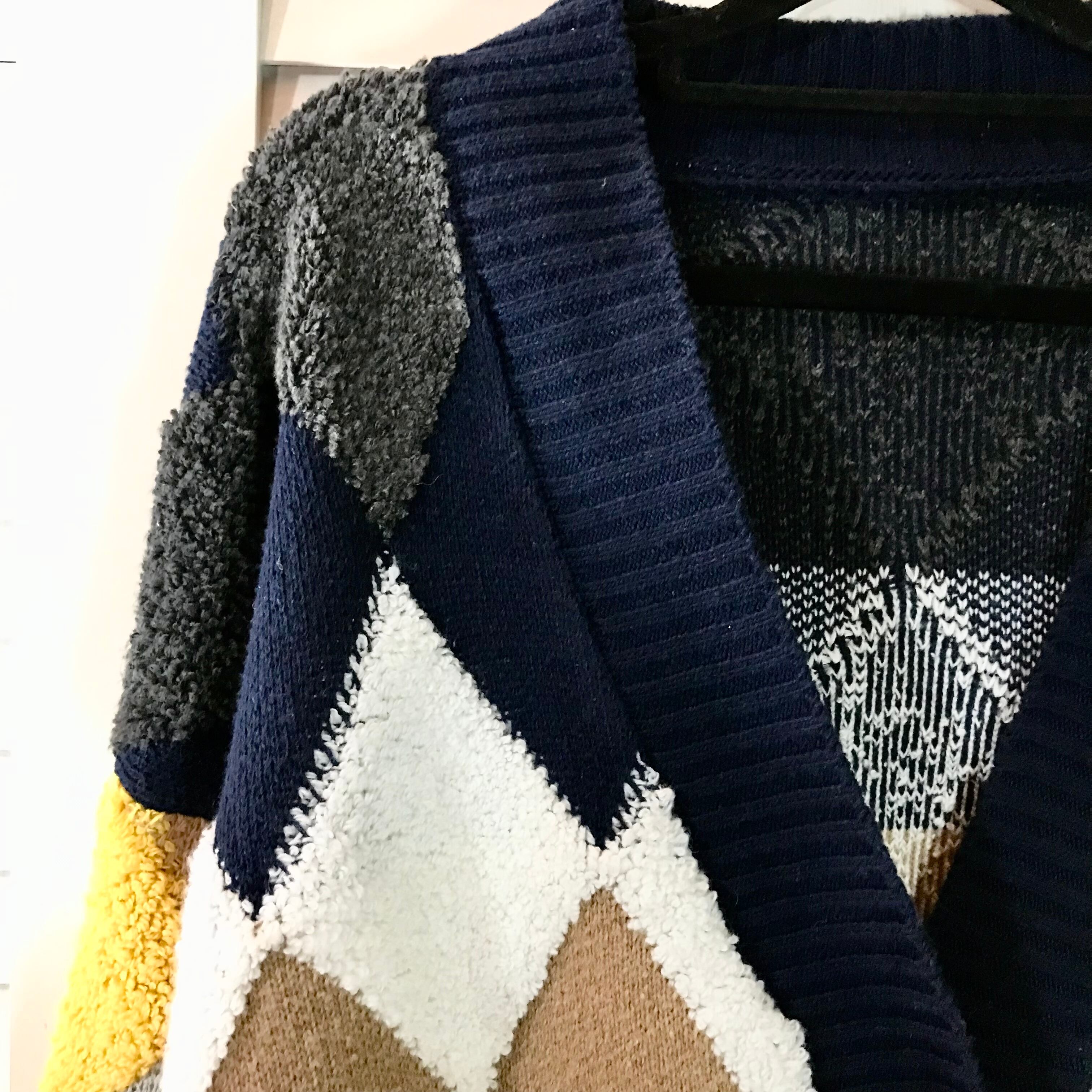 CORGE ダイヤパターンのオーバーサイズカーデ ネイビーベース