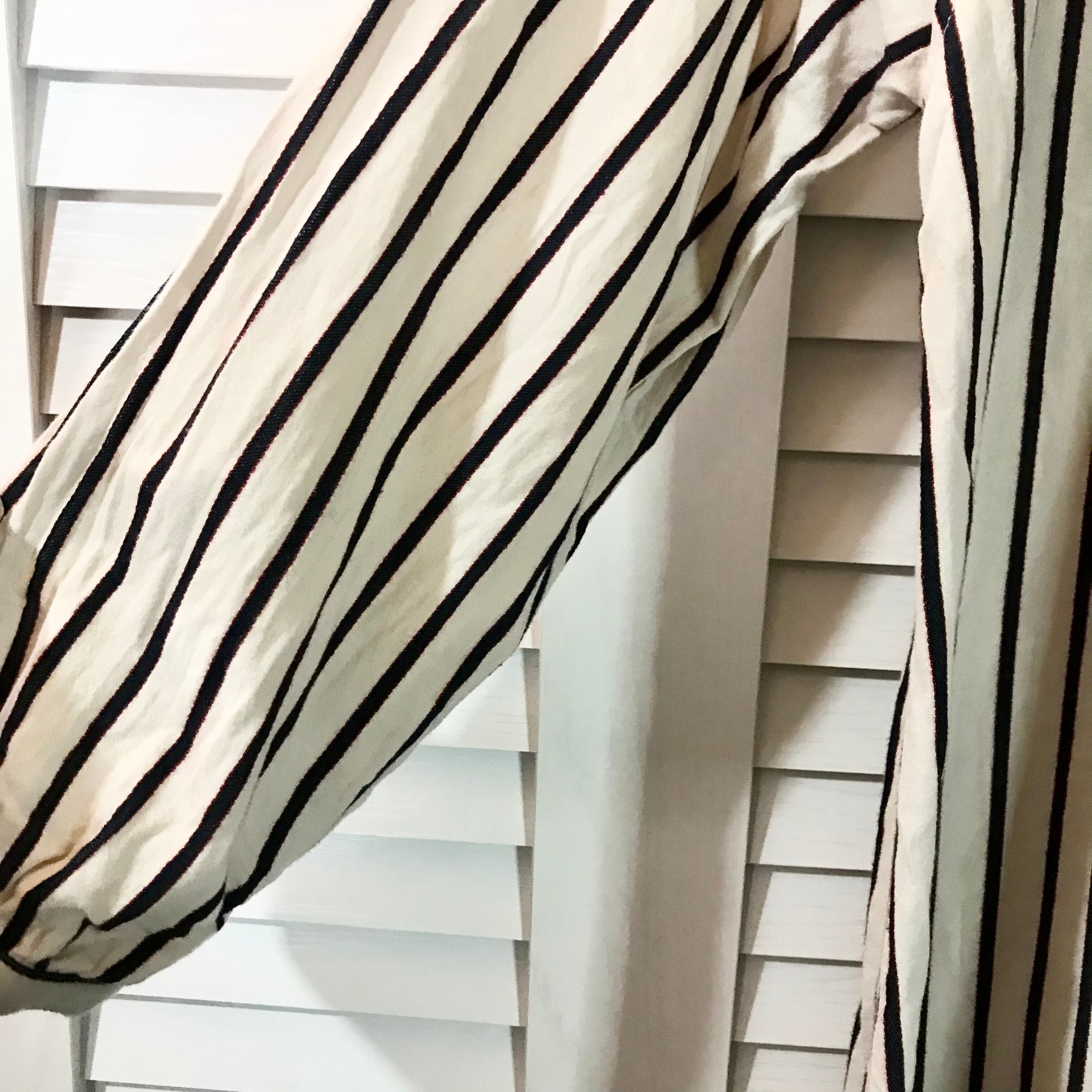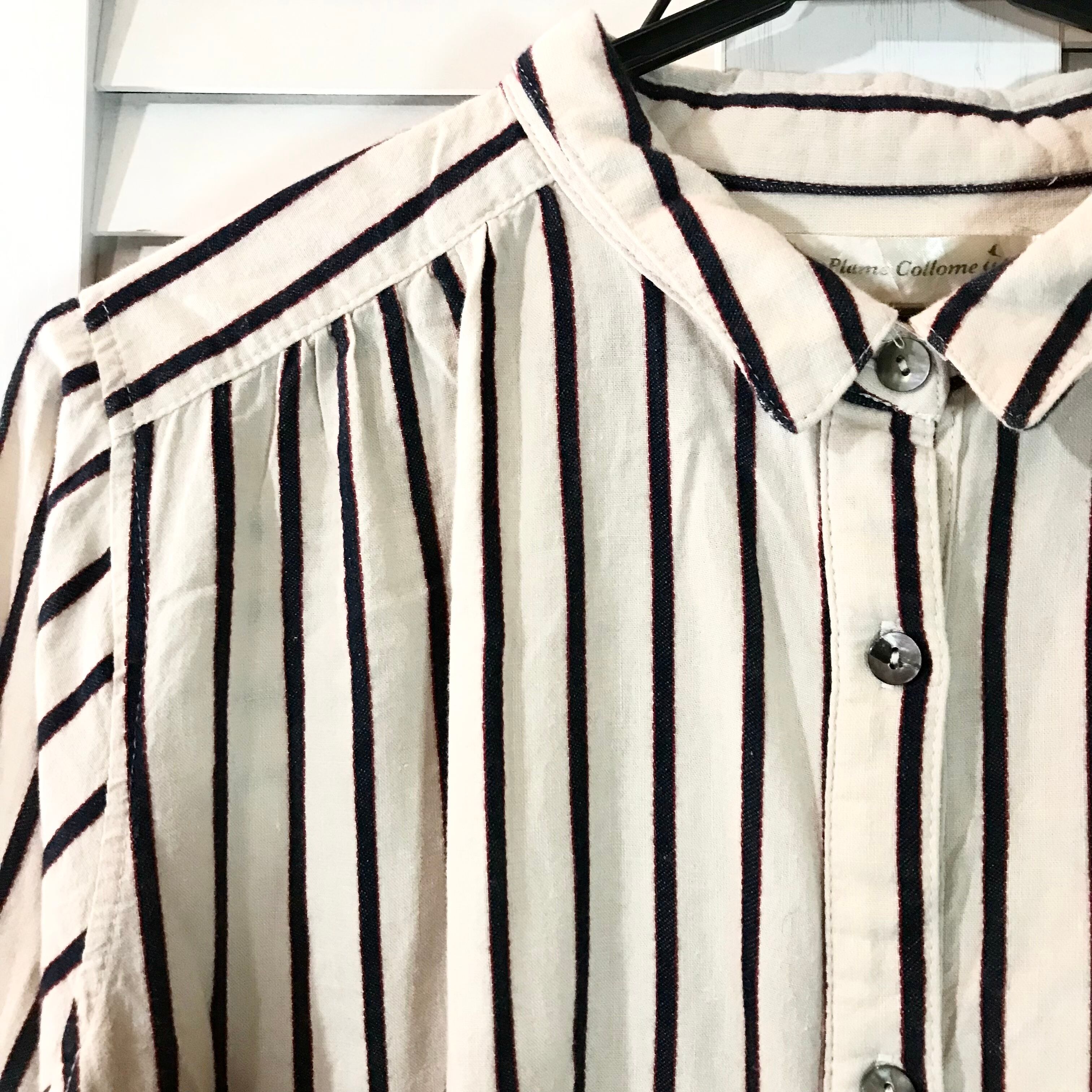 Plame Collome インディゴ×レッドストライプ コットンシャツワンピ アイボリー