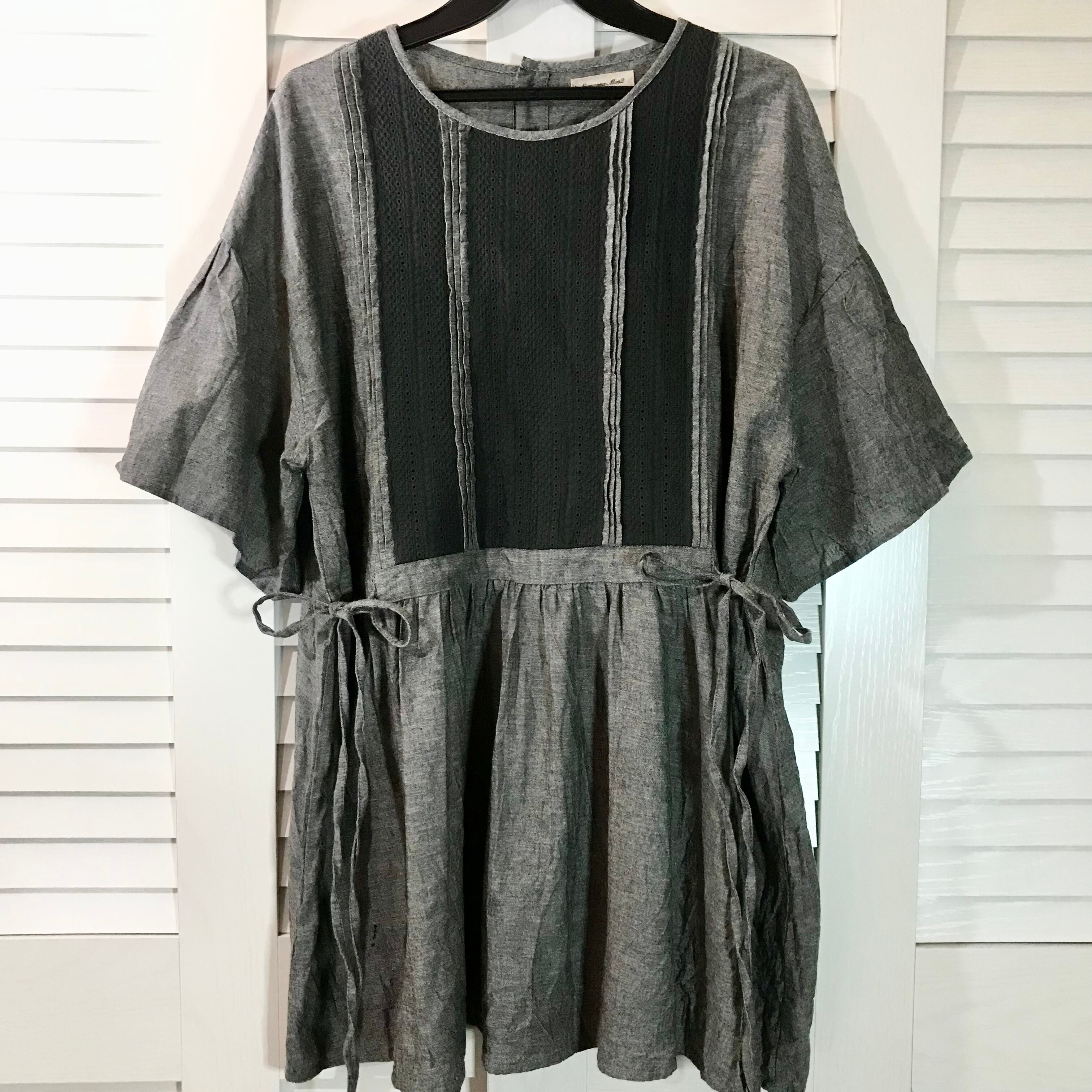 Samansa Mos2 フレアースリーブのレースチュニックブラウス チャコールグレー