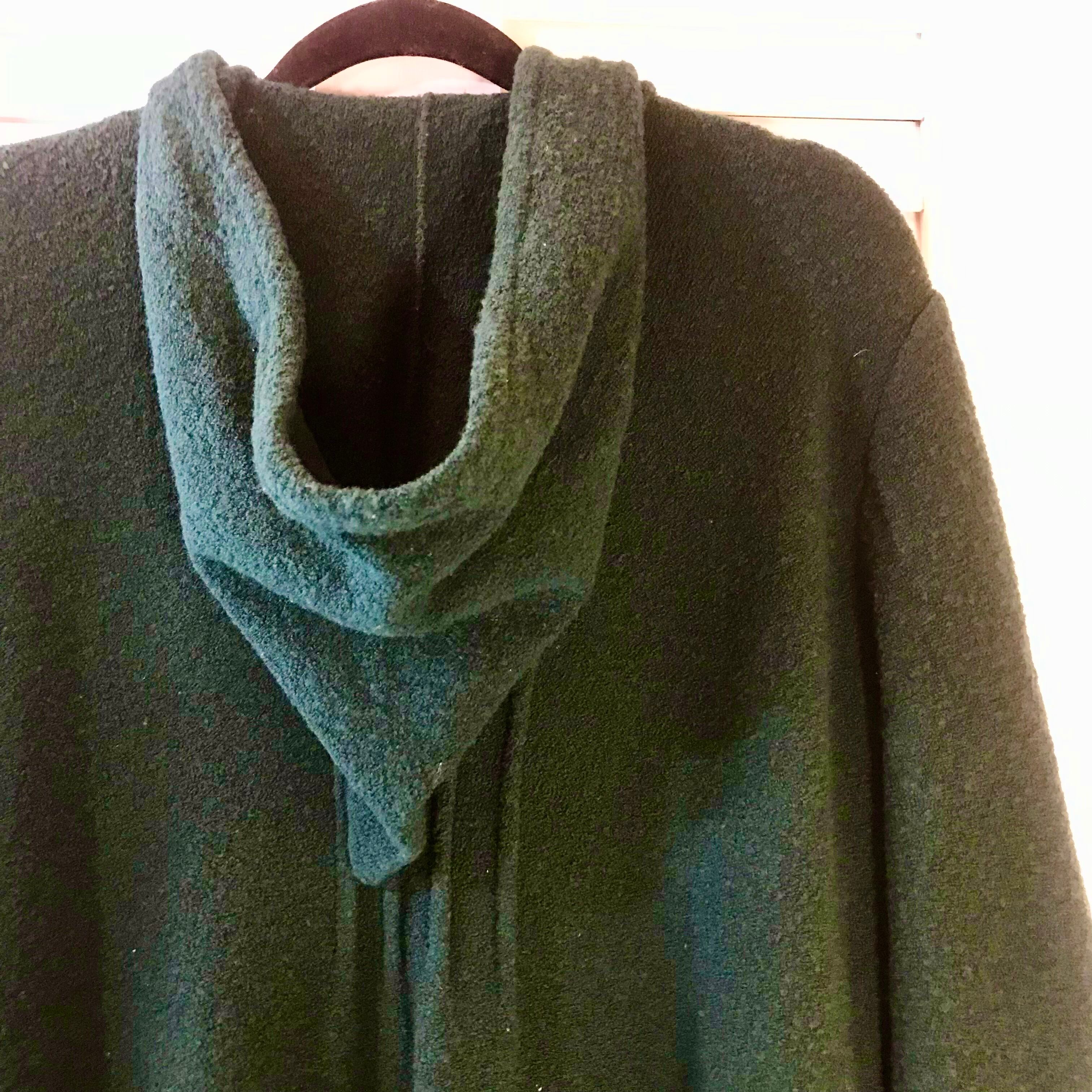 TABASA とんがりフードのツィードブークレーニットロングジップカーデ ダークグリーン