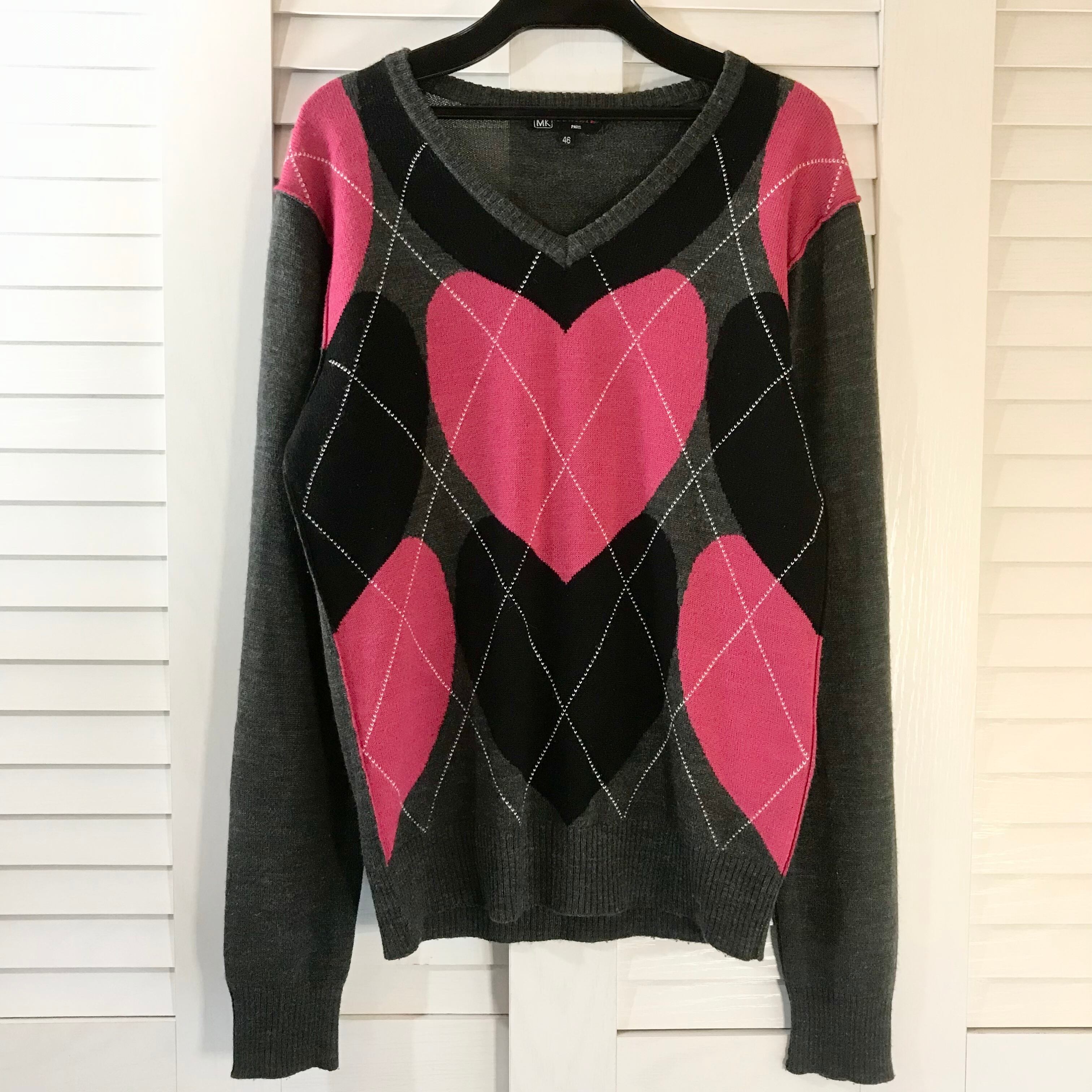 MICHEL KLEIN homme ハートアーガイルVネックニット グレー×ピンク×ブラック