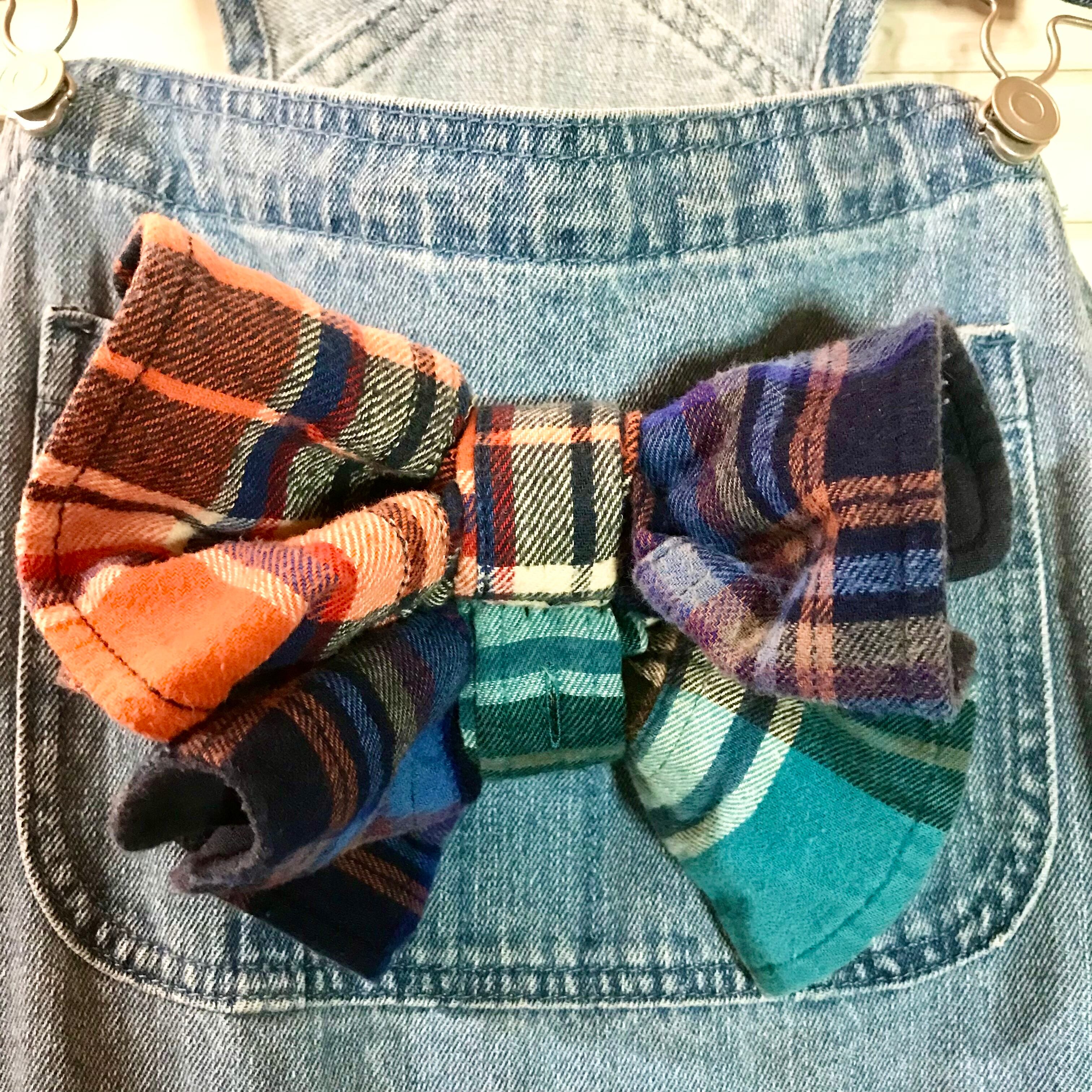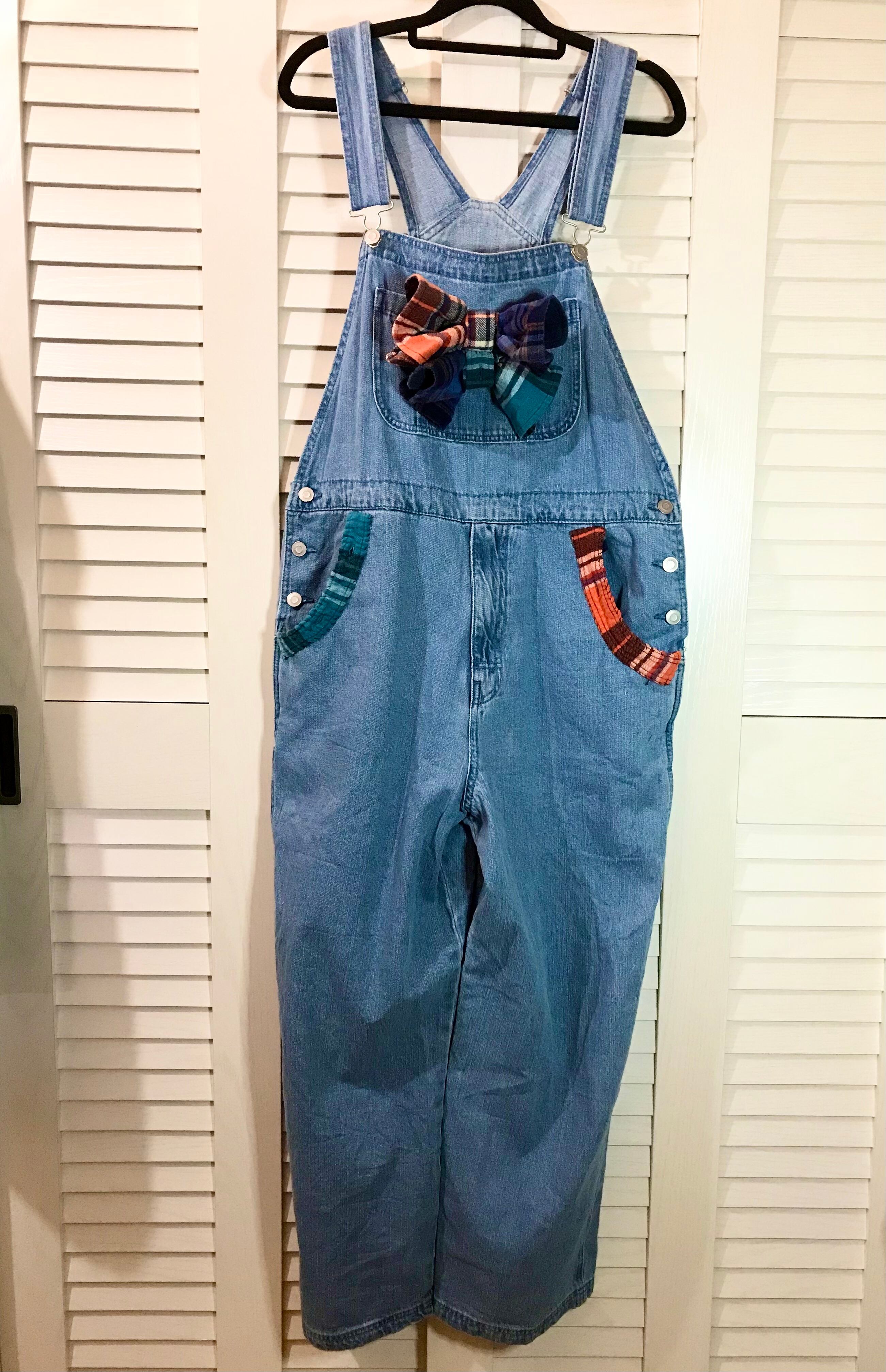 古着屋購入のデニムサロペットにUSEDのネルシャツを使ってリメイクしました◎