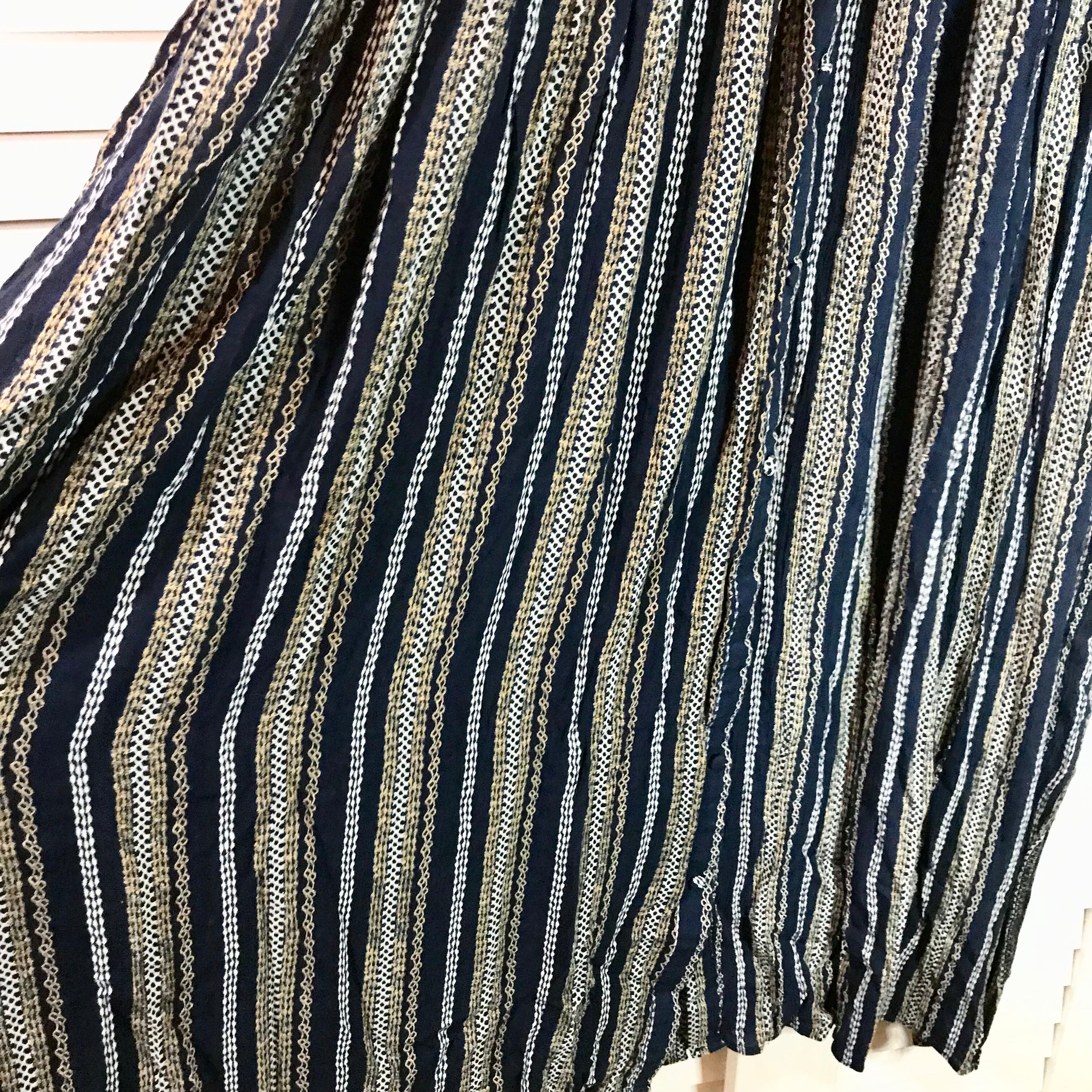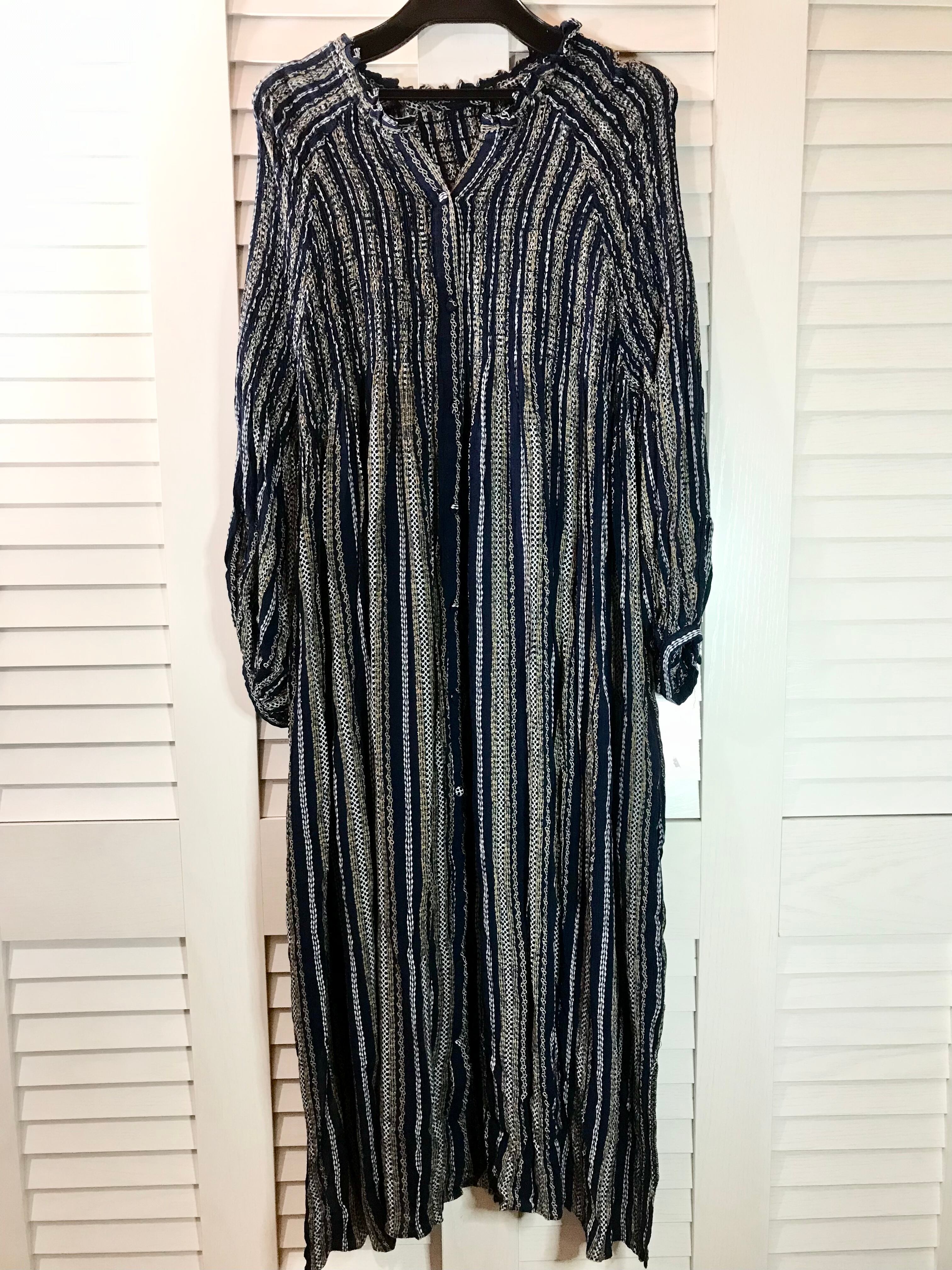 MILKFED. オリエンタルストライプのシャーリングデザインレーヨンワンピ ネイビー