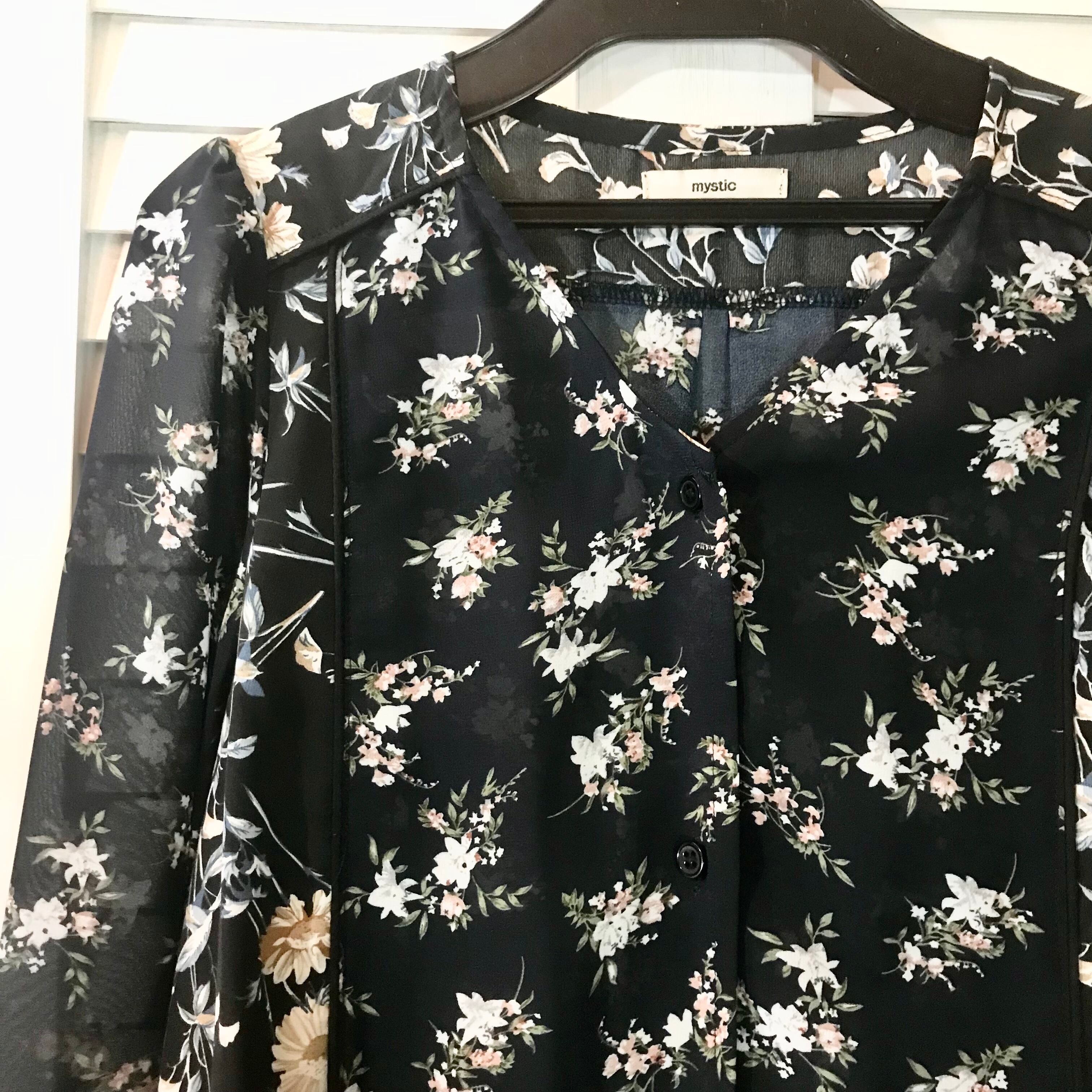 mystic 花柄パネル切り替えシフォンワンピ ブラック×ネイビー | お洋服屋さん 『GOKKO』