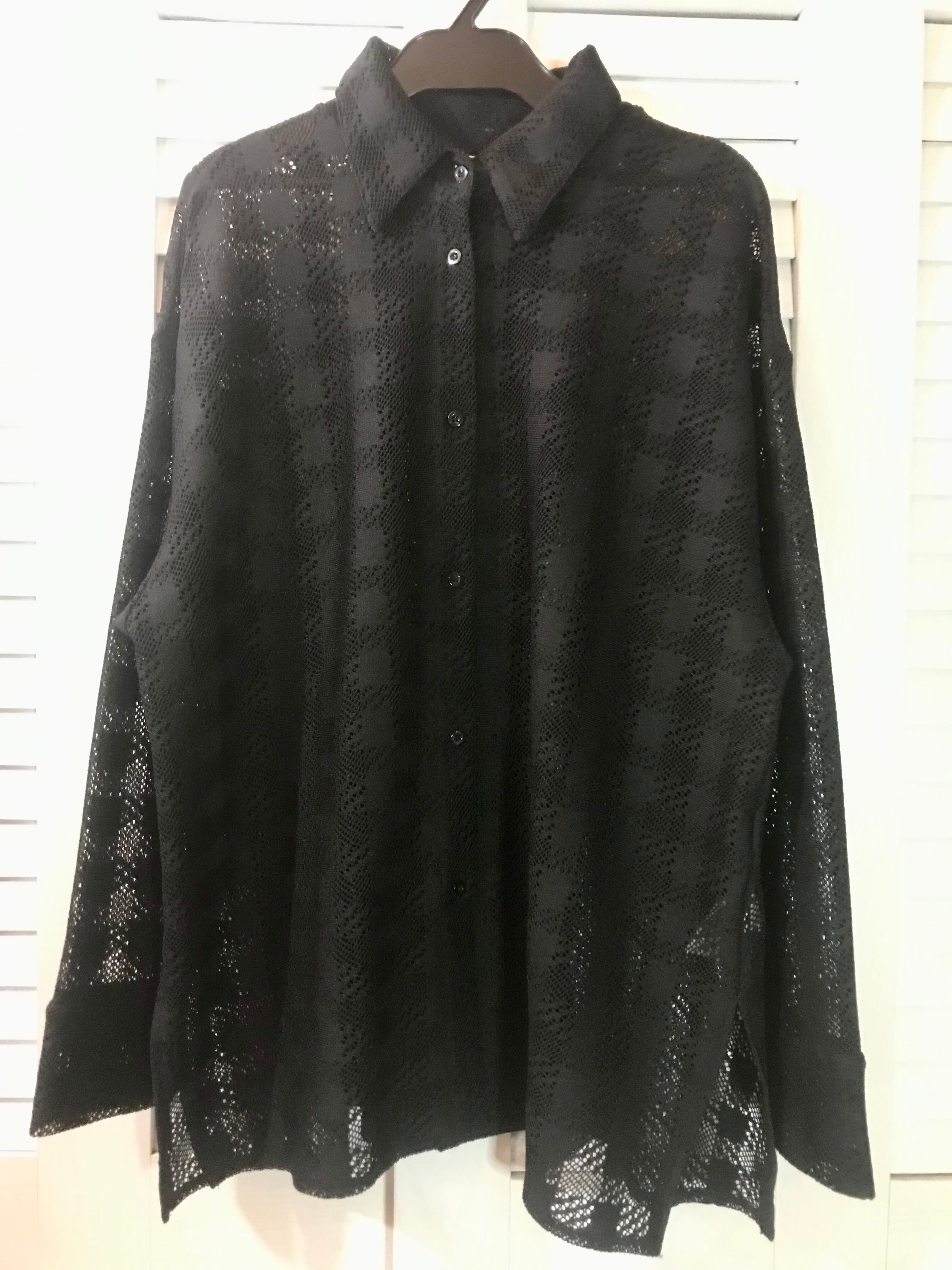LOWRYS FARM BIG千鳥格子レースシャツ ブラック