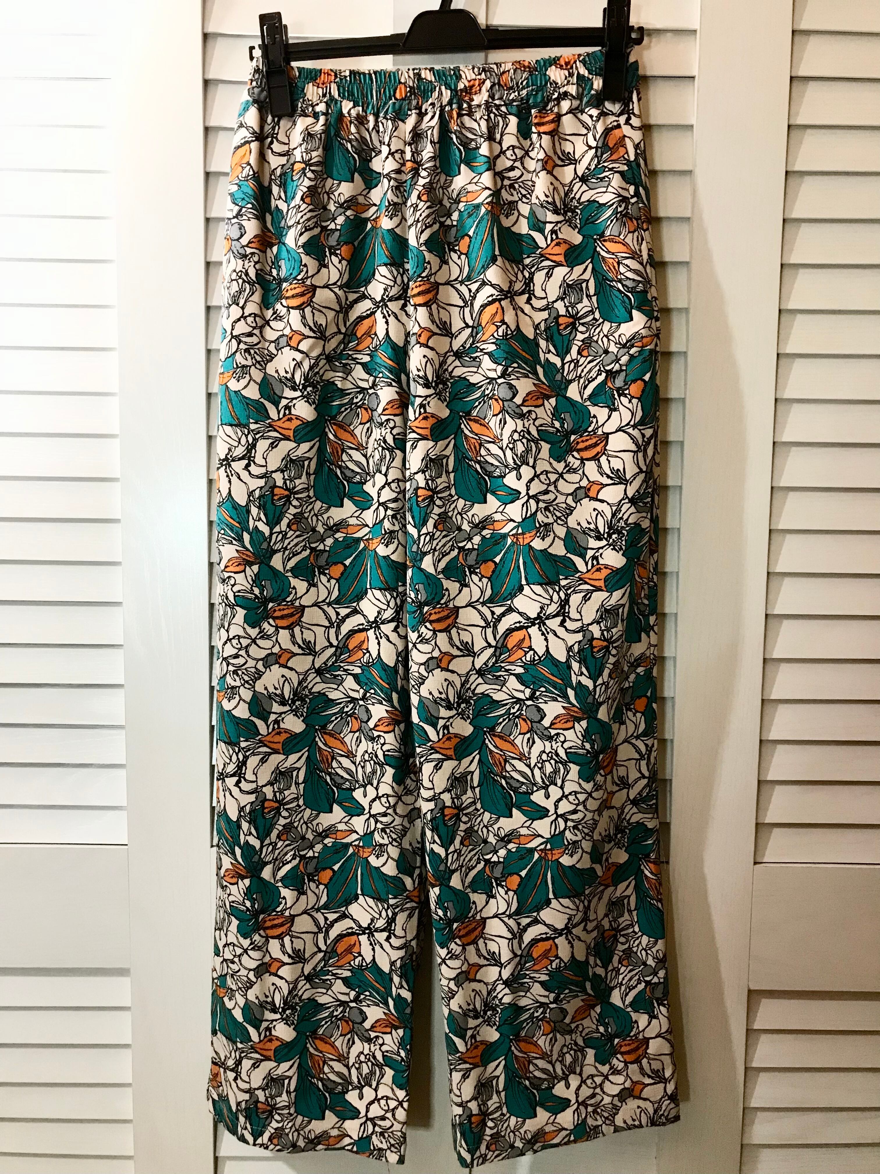 coen エキゾチックフラワー柄イージーワイドパンツ グリーン×ライトベージュ