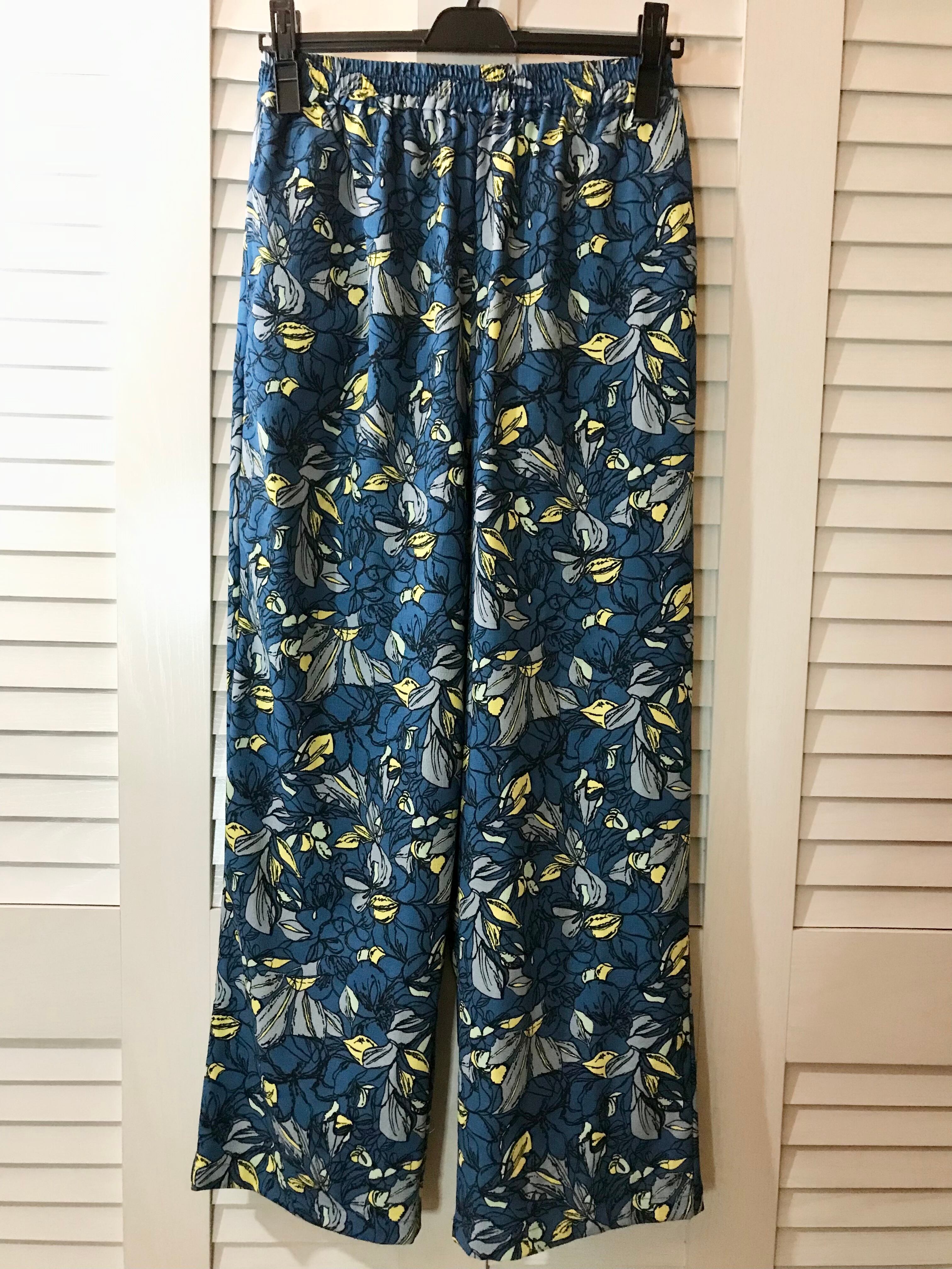 coen エキゾチックフラワー柄イージーワイドパンツ ブルー
