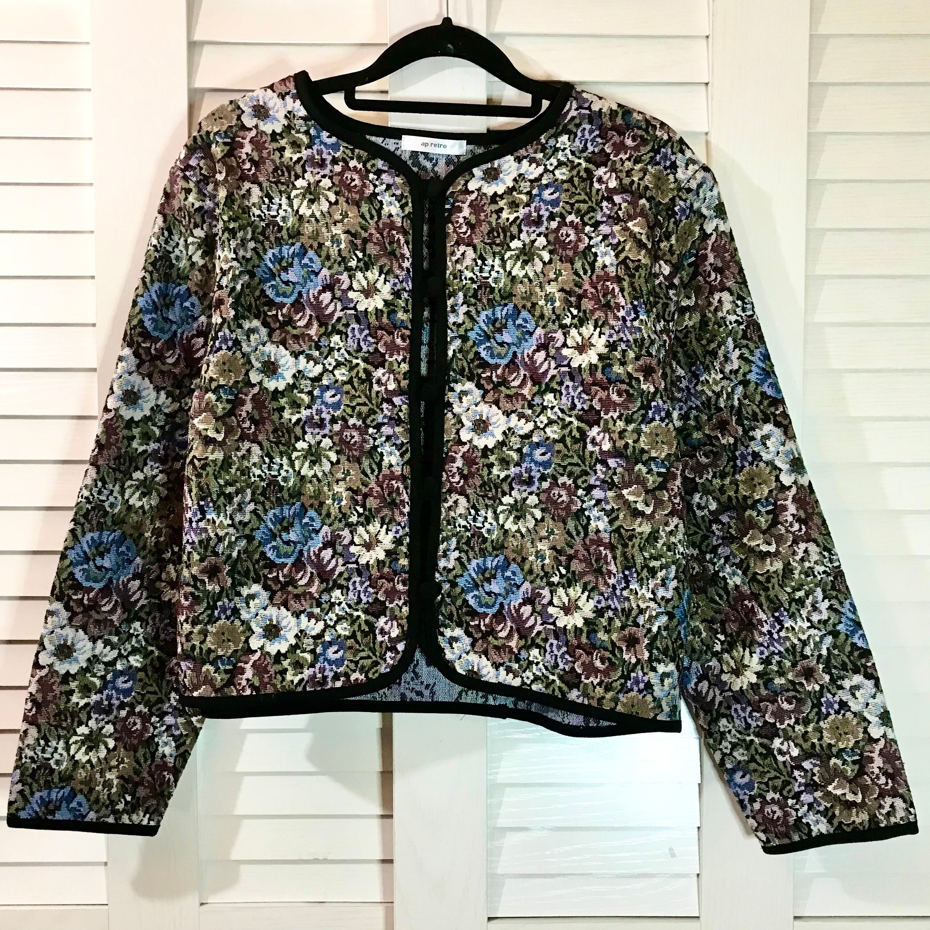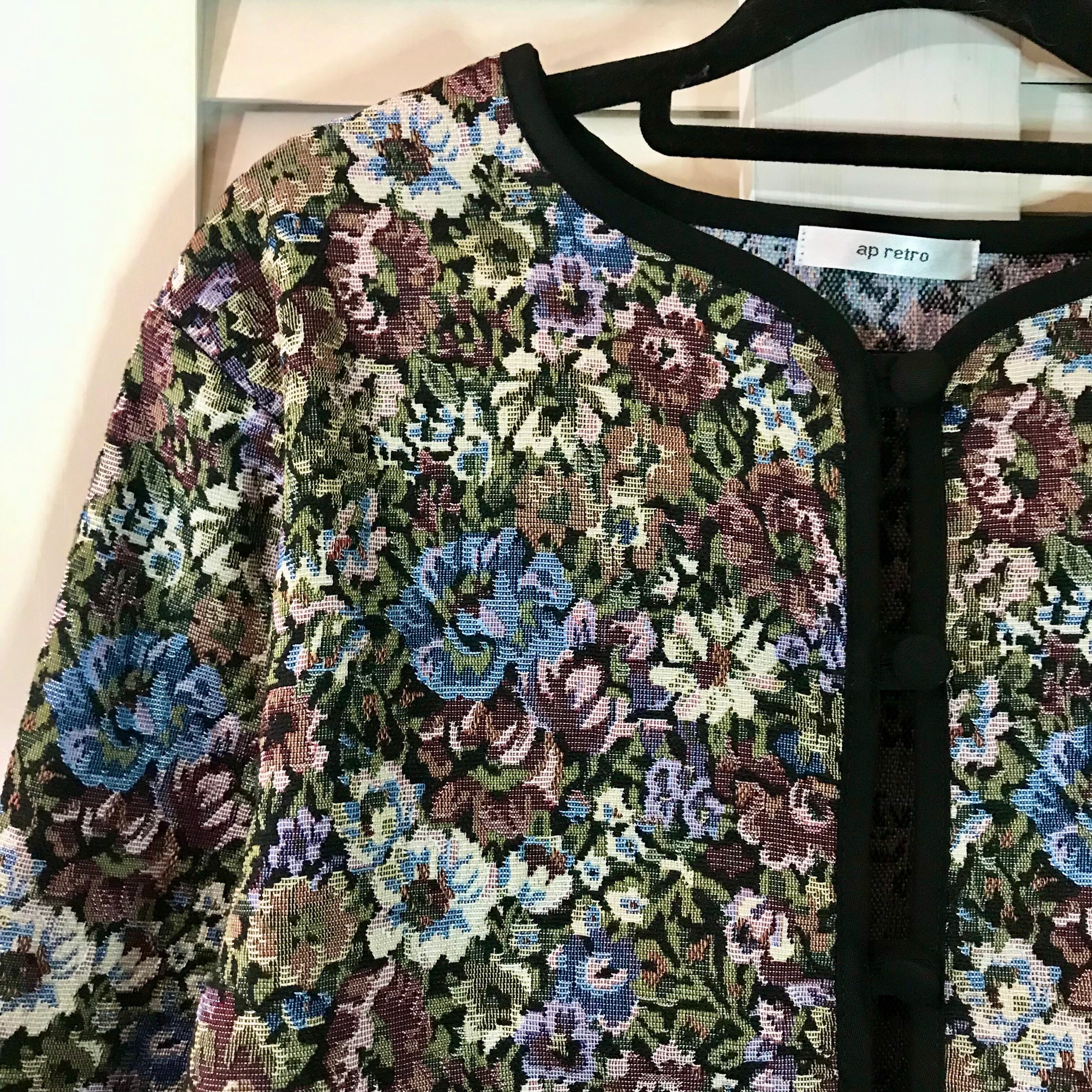 ap retro フラワーパターンゴブラン ノーカラージャケット