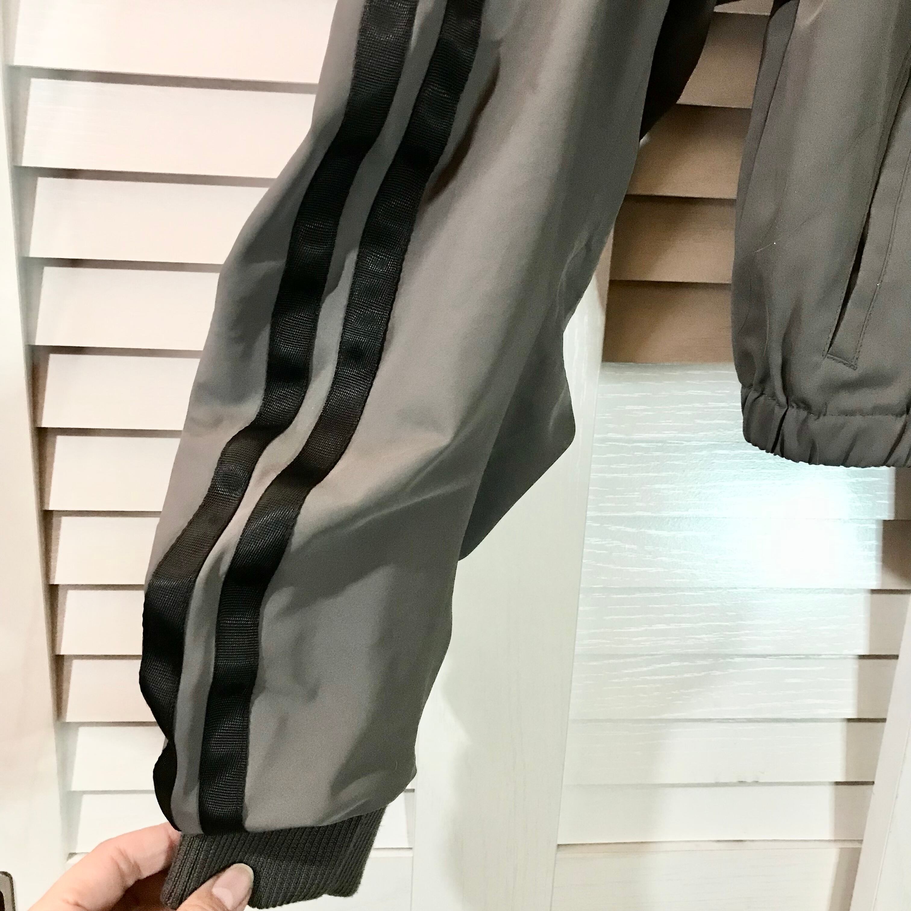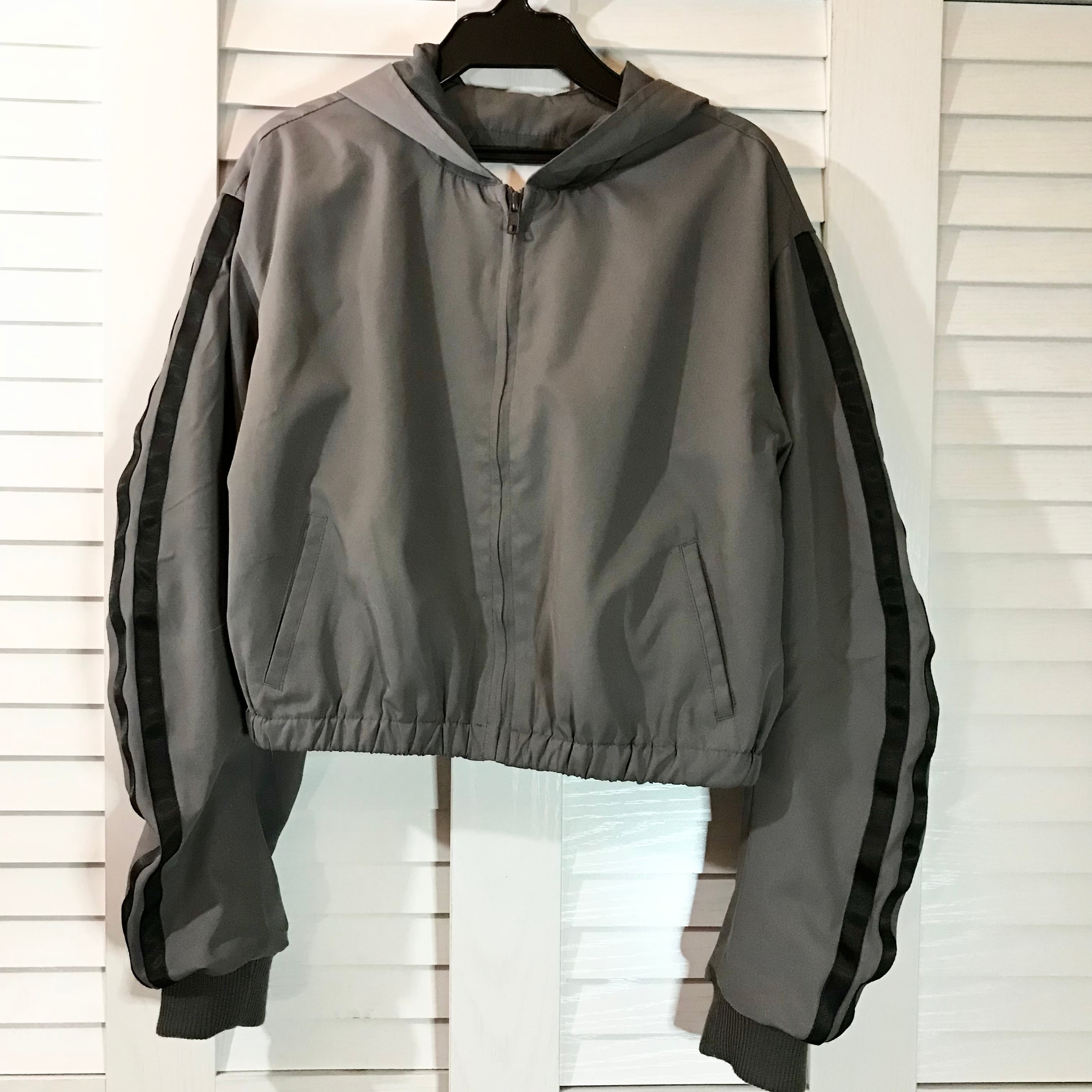 GYDA ラインシャーリングスリーブ ショート丈フーディーウィンドブレーカー グレー