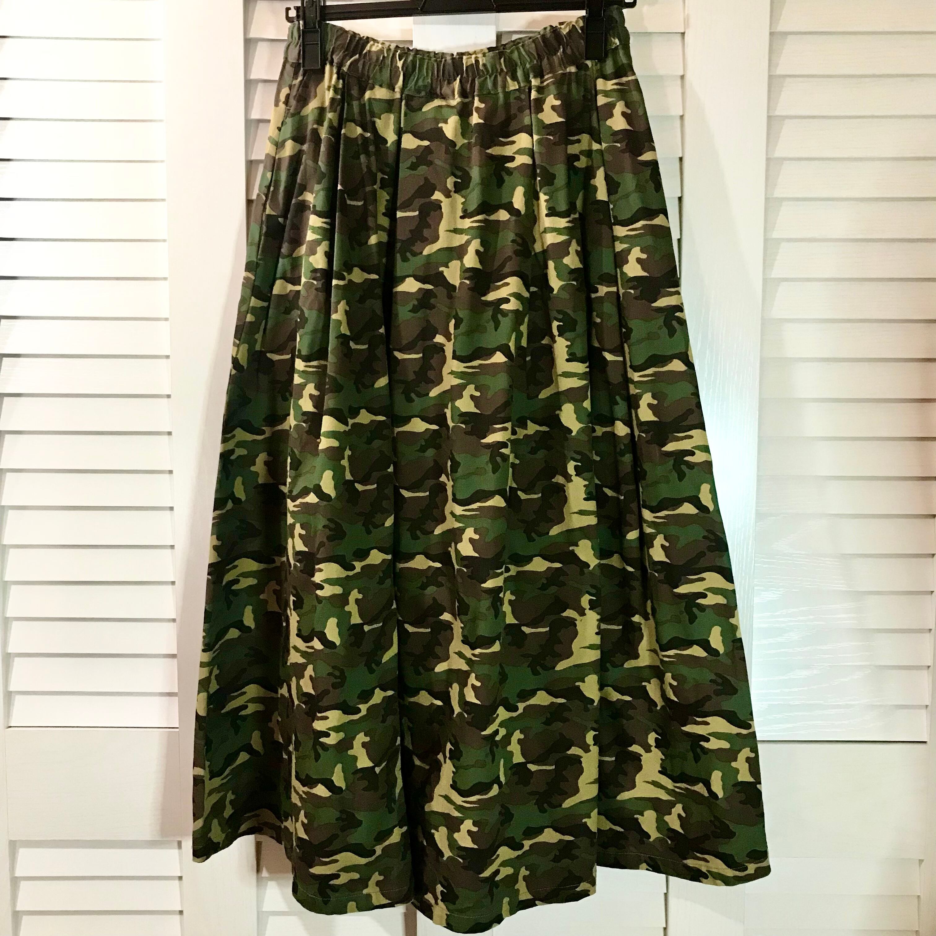 Samansa mos2 珍!チノクロス迷彩タックギャザーフレアーロングスカート カーキ