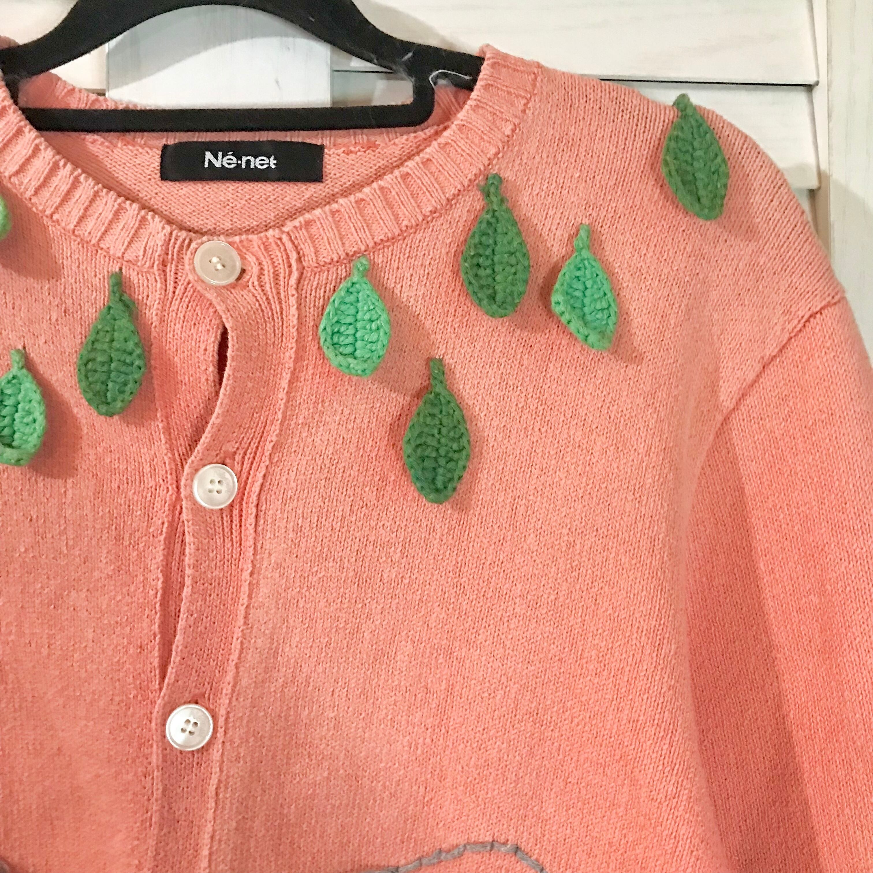 Ne-net コアラ刺繍&葉っぱモチーフニットカーデ シャーベットオレンジ