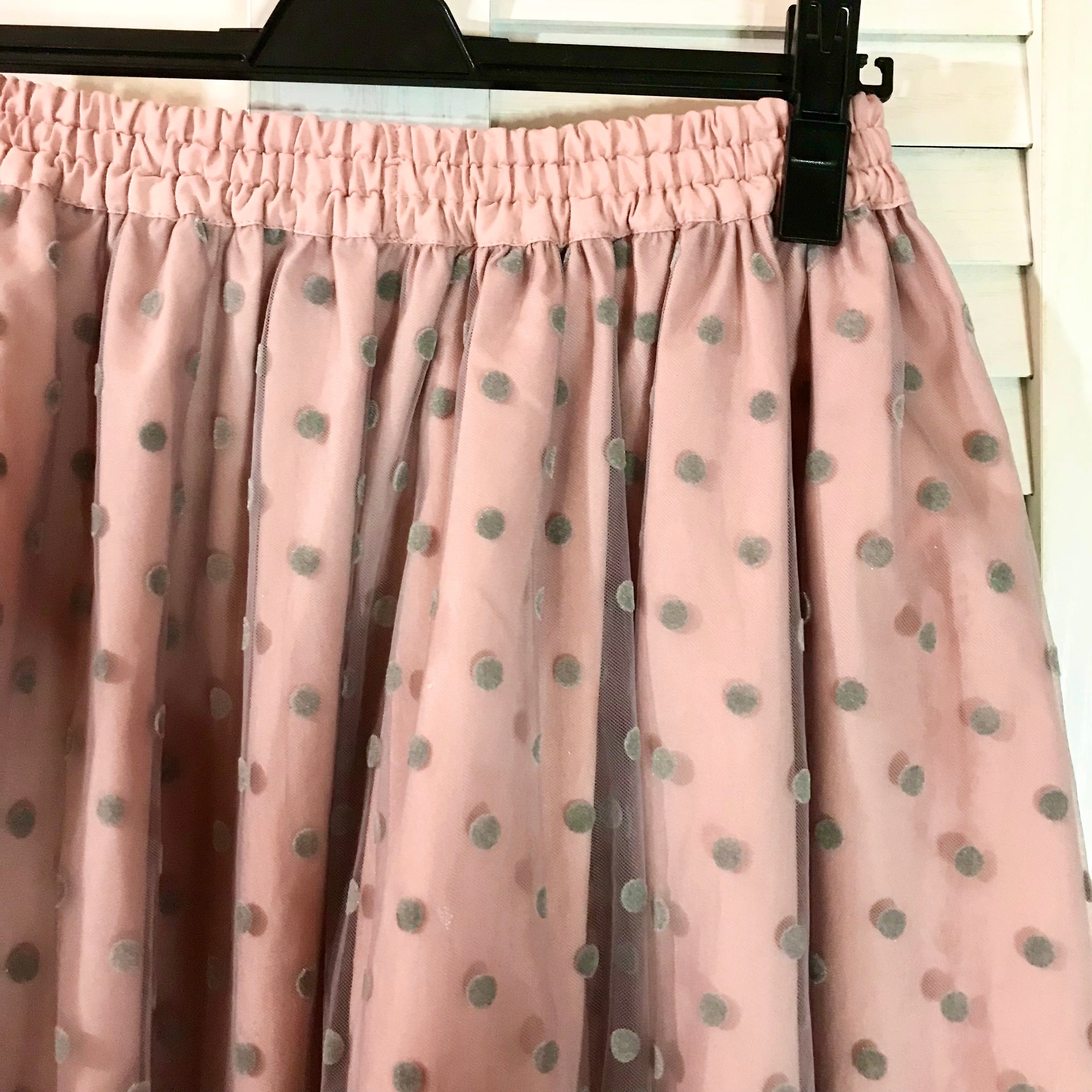n'OrLABEL フロッキードットチュールスカート シャーベットオレンジ×グレー