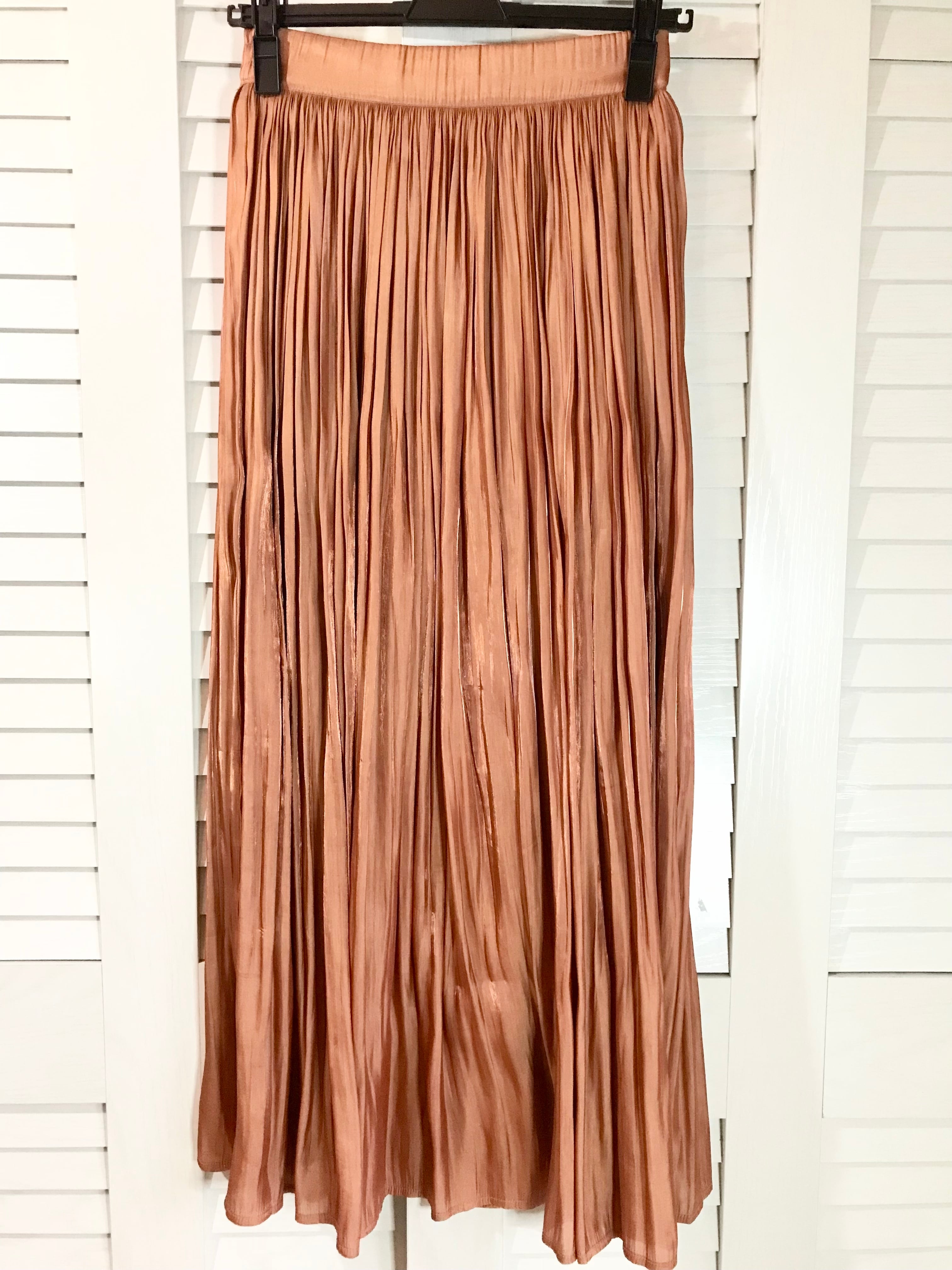 URBAN RESEARCH シャイニーサテンのランダムプリーツスカート オレンジ