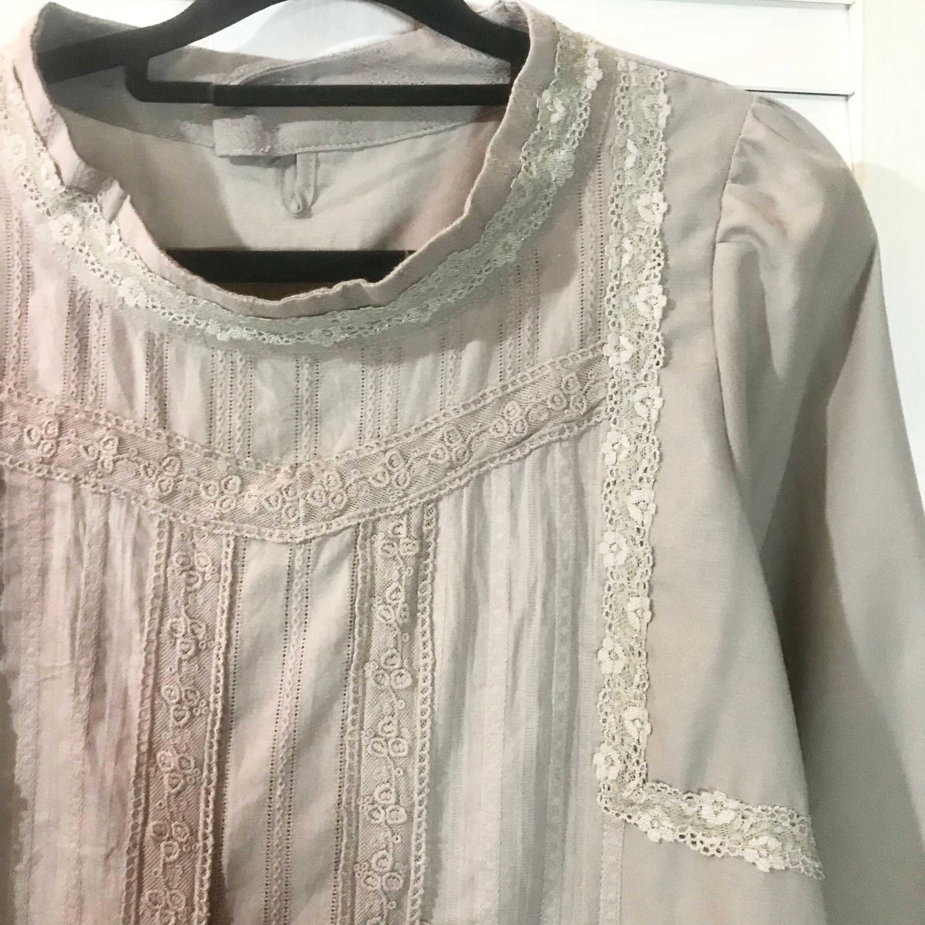 n'OrLABEL クラシックベージュのミドルネックレース使いコットンブラウス | お洋服屋さん 『GOKKO』