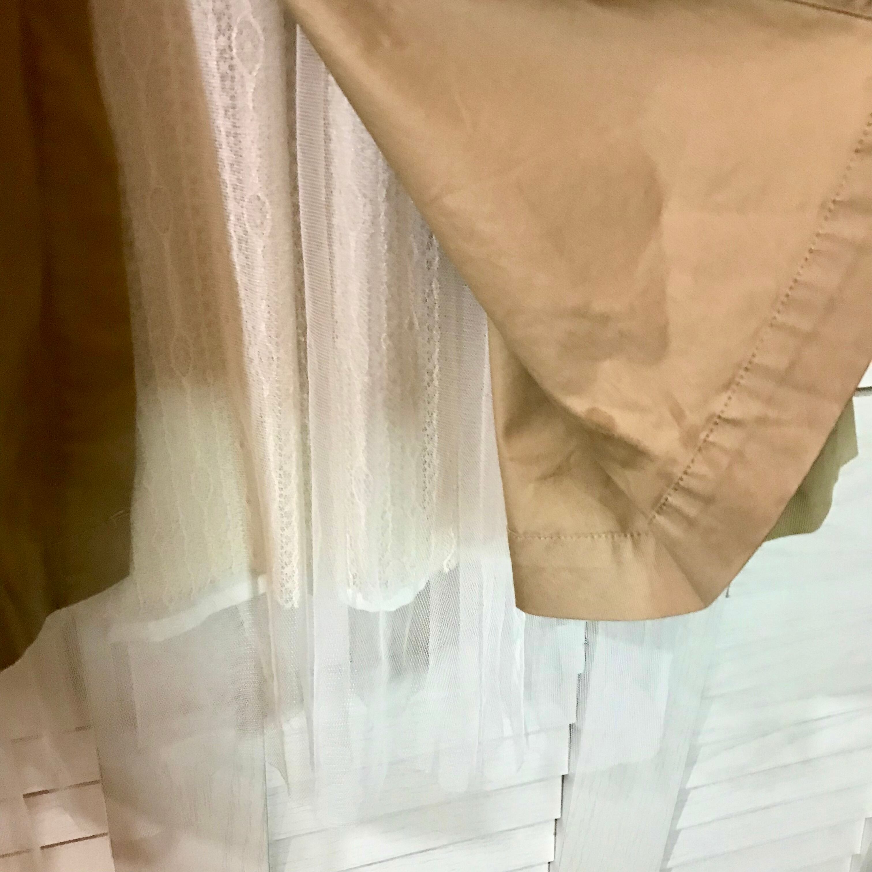 LAGUNAMOON チノクロス&チュール&レースのミルフィーユスカート タックフレアー ベージュ
