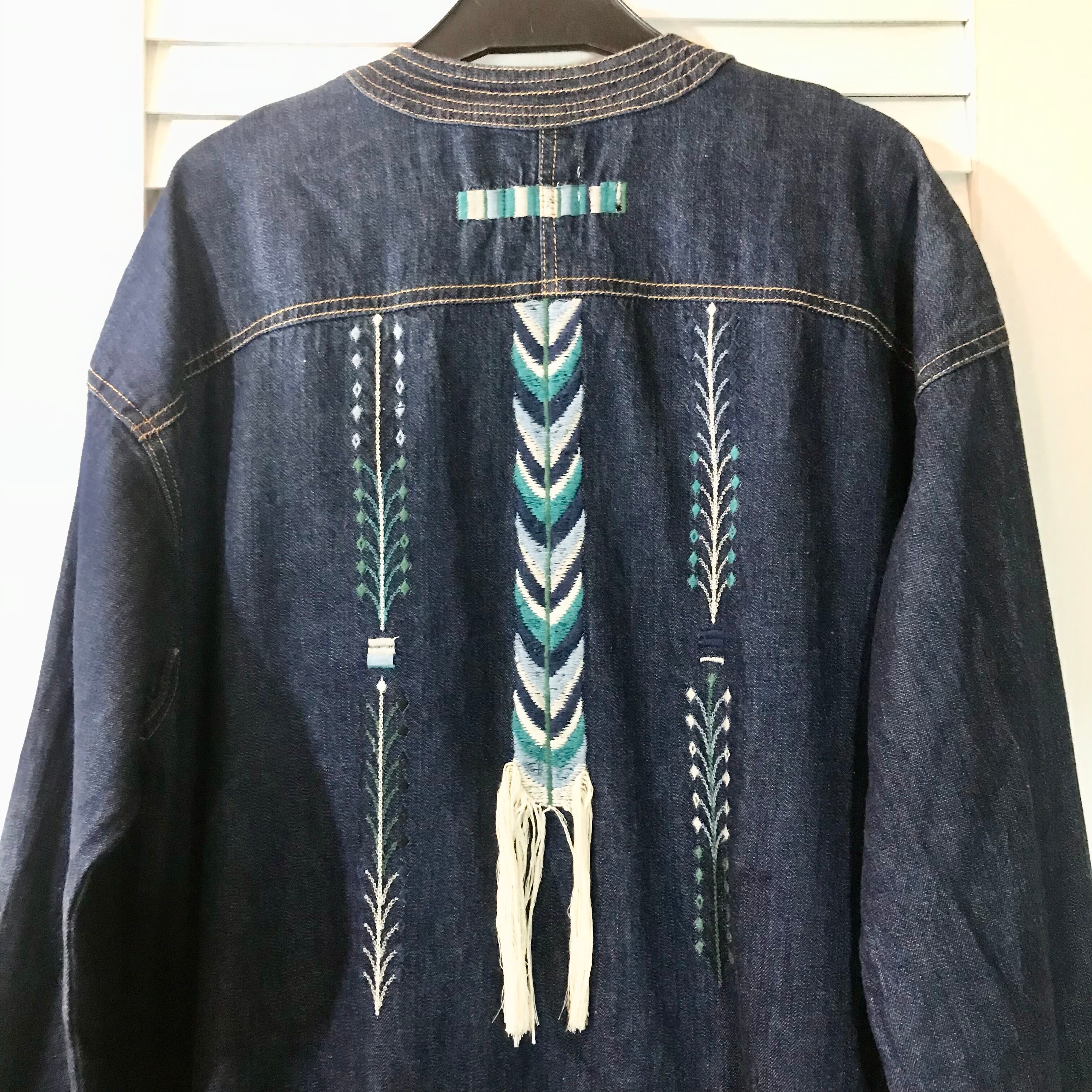 TITIKAKA ネイティブ刺繍のデニムシャツロングコート インディゴ